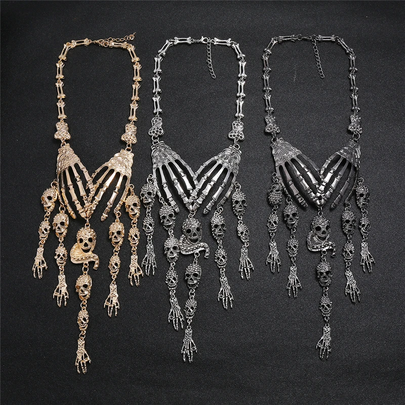 Ожерелье LZHLQ, длинная цепочка со скелетом и головой, женские модные аксессуары, ожерелье на воротник с черепом, женское массивное Ювелирное Украшение в стиле панк