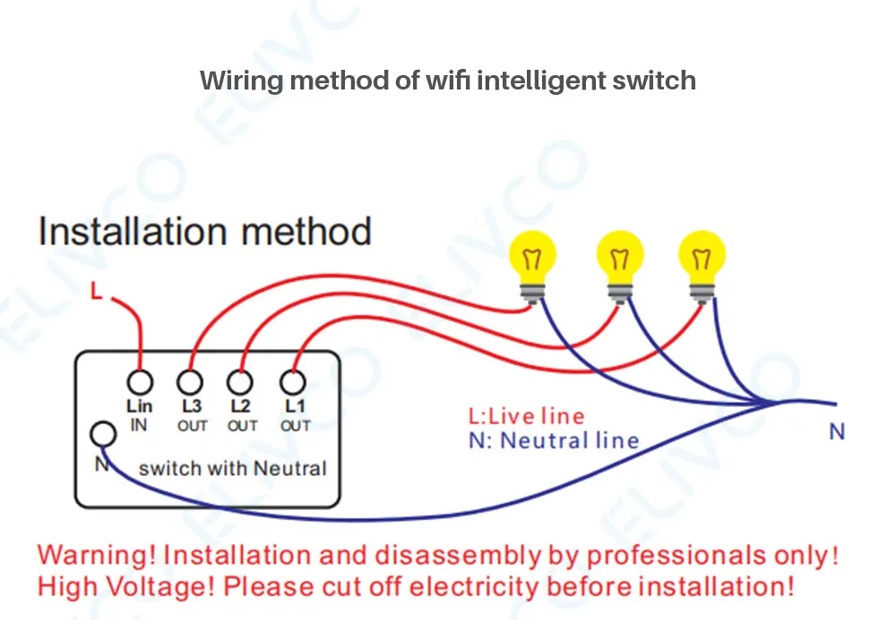 Не нужно указывать провода. В моей установке я не получил нейтральный, и этот переключатель не будет работать с нейтральным. Схема проводки должна быть показана на изделии. Продавец отказывается заменить его. Я абсолютно не рекомендую этого продавцу, если вам нужно что-то конкретное, просто получите изделие с схемой проводки, отключенной.