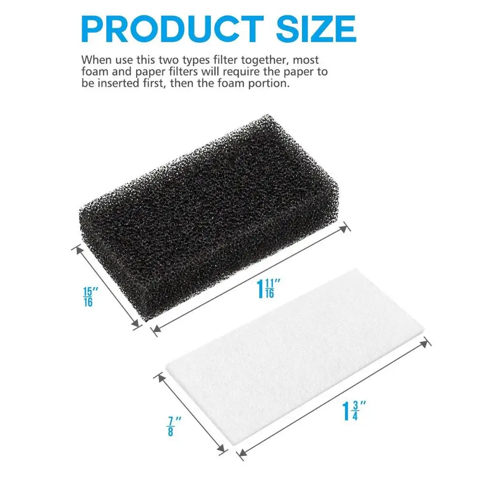 Многоразовый черный Поролоновый фильтр блокирует крупные твердые частицы. Одноразовый белый ультратонкий фильтр блокирует мелкие частицы. Используйте их вместе, чтобы обеспечить самый чистый воздух.