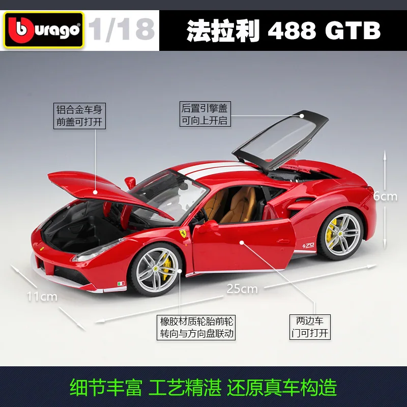Модель автомобиля Bburago 1:24 FERRARI 488, модель автомобиля из сп...