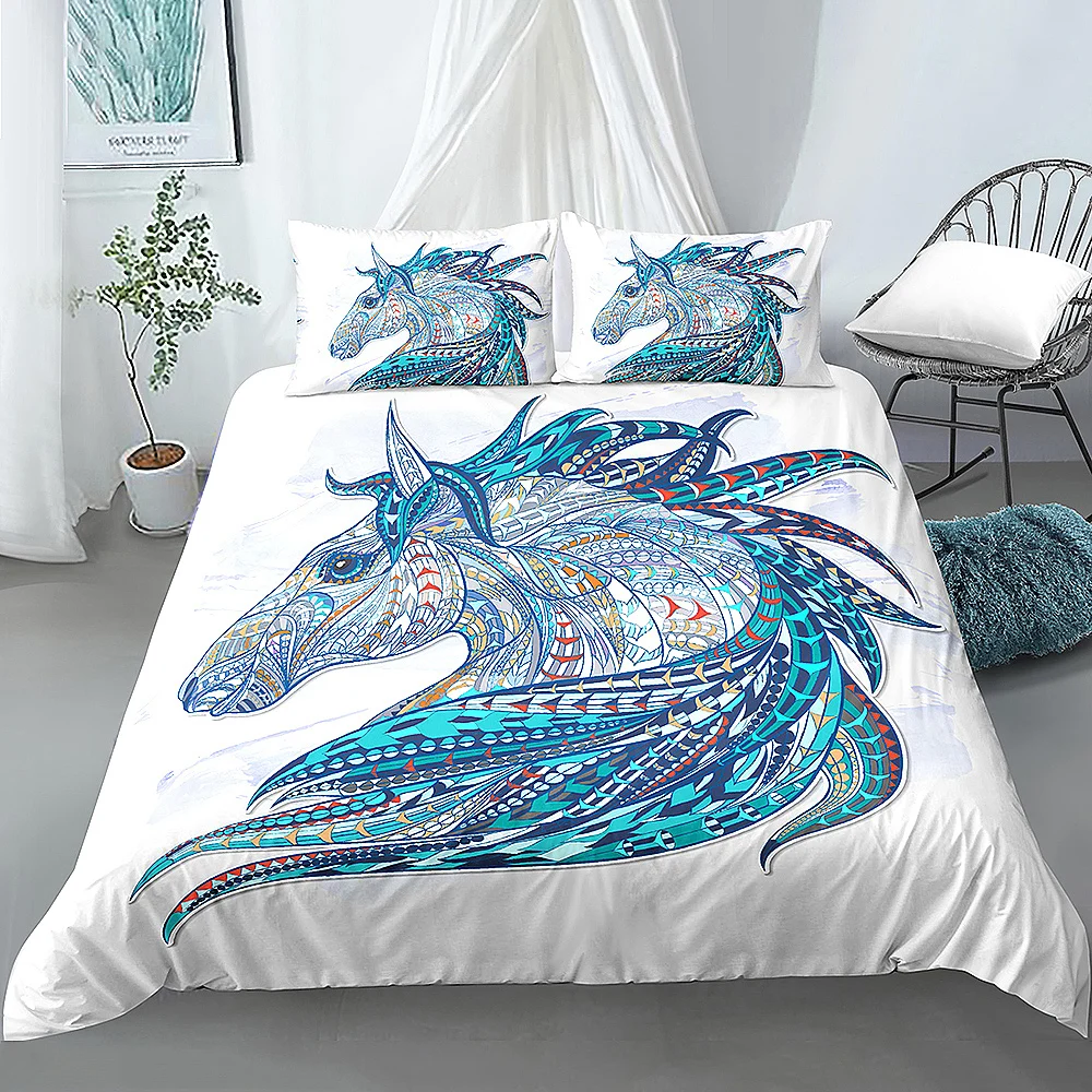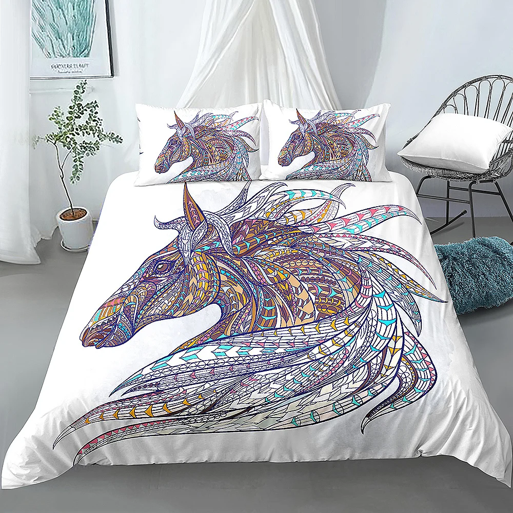 Комплект постельного белья из 23 предметов, пододеяльник с рисунком головы лошади в стиле бохо