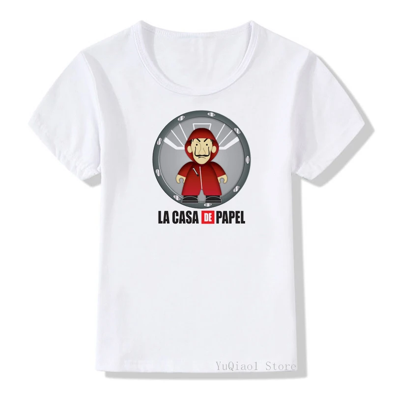 Футболка с изображением домика из бумаги, забавная унисекс Одежда для мальчиков и девочек, футболка с изображением бумаги, детские футболки с рисунком, ограбление денег, детские футболки