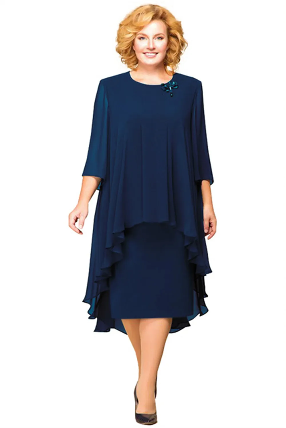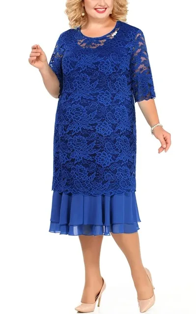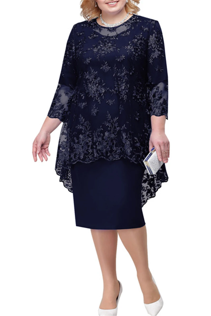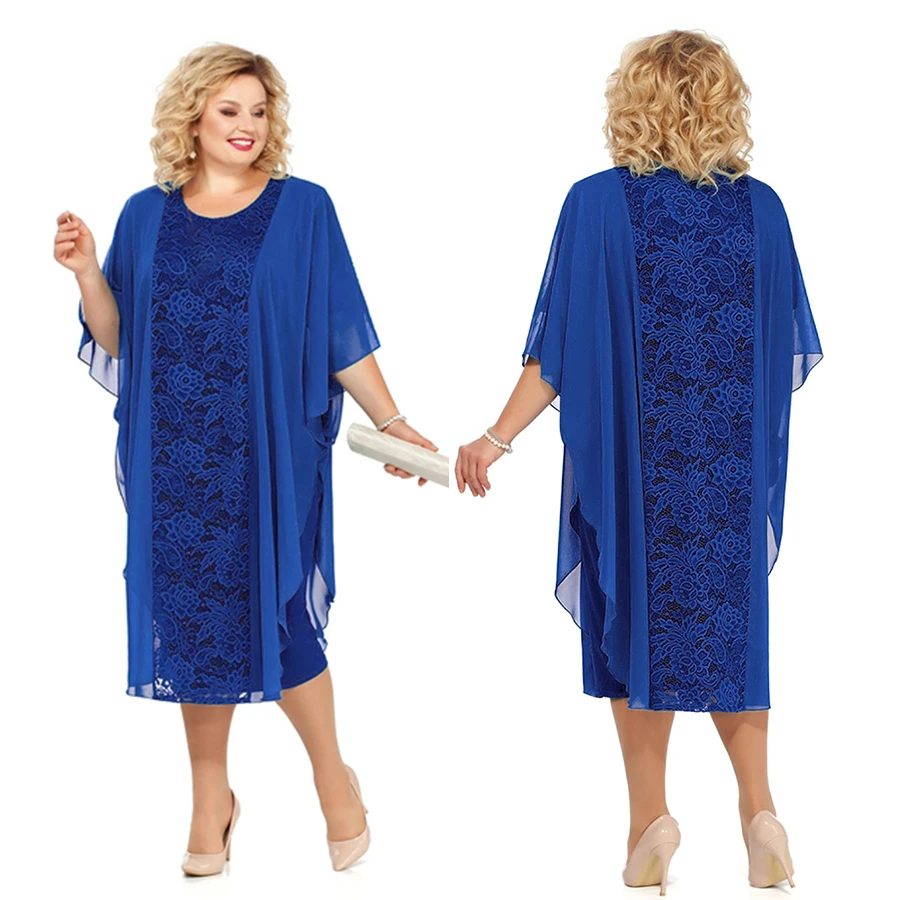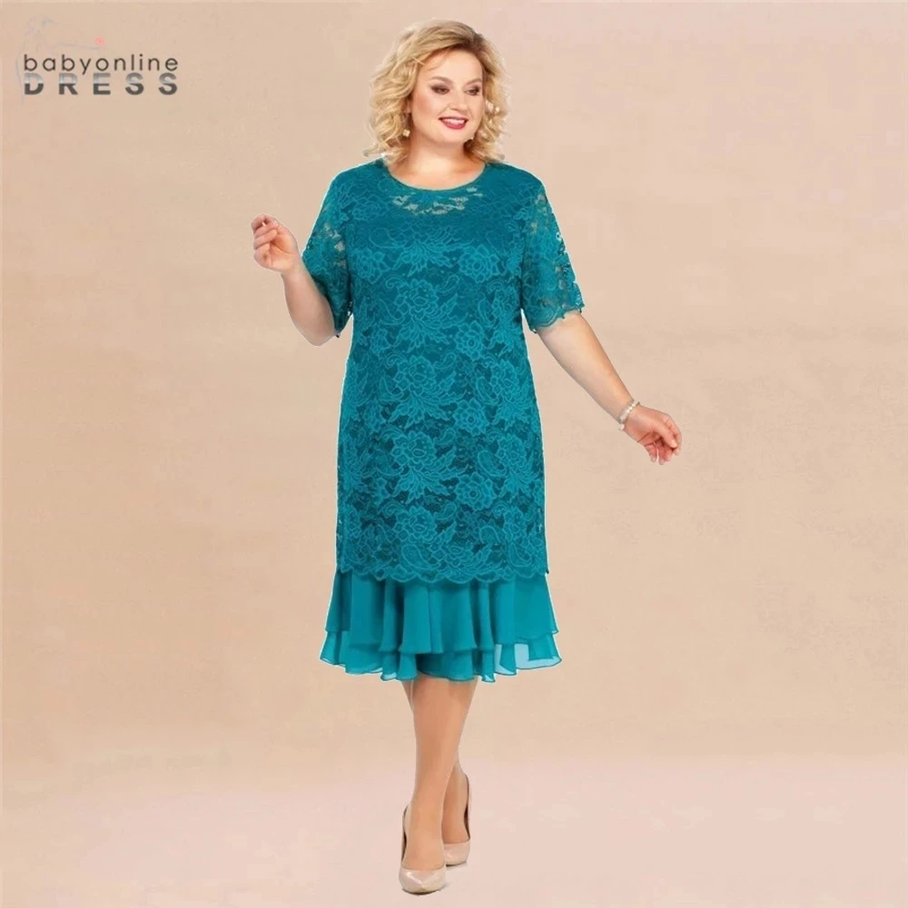 Женское платье для матери невесты, кружевное элегантное платье длиной до середины икры, комплект из двух предметов, размера плюс