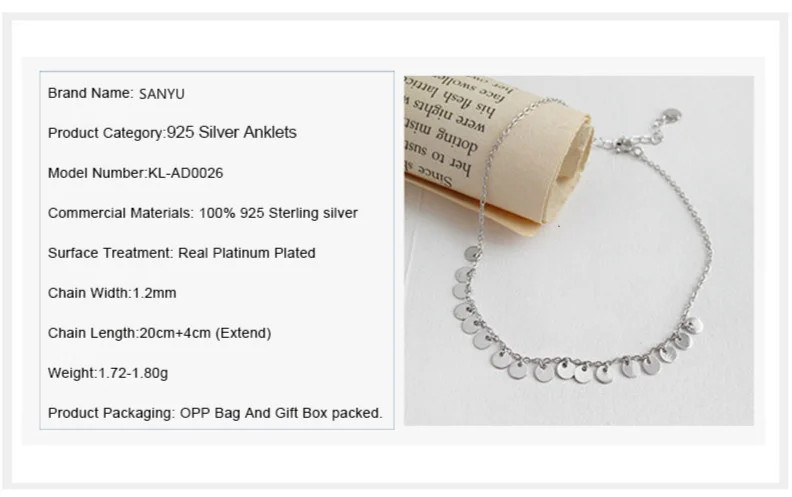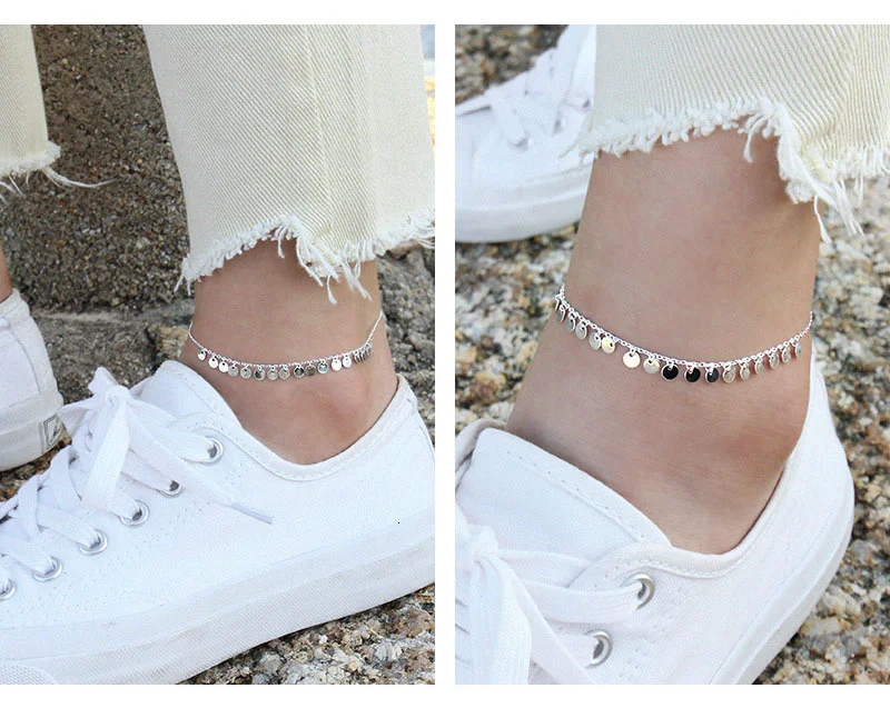 Браслеты для ног женские в стиле бохо, анклеты из стерлингового серебра 925 пробы с геометрической круглой цепочкой, Изящные Ювелирные украшения