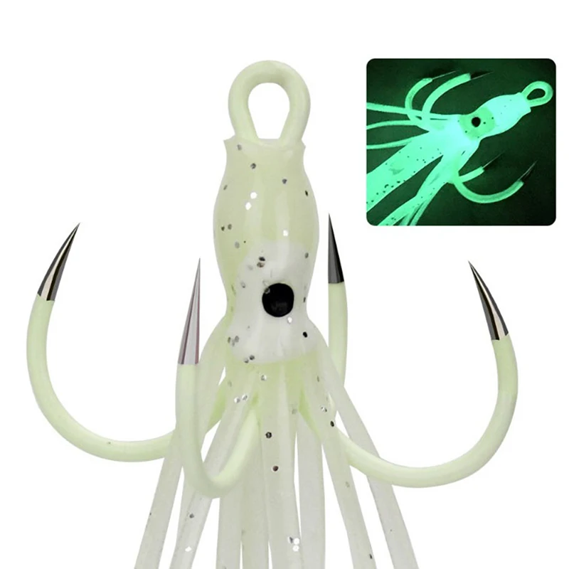 1 шт. рыболовная приманка, светящаяся Ночная приманка с крючком, светящаяся кальмара, осьминог, искусственная наживка, крючок для соленой воды, рыболовная приманка, джиг