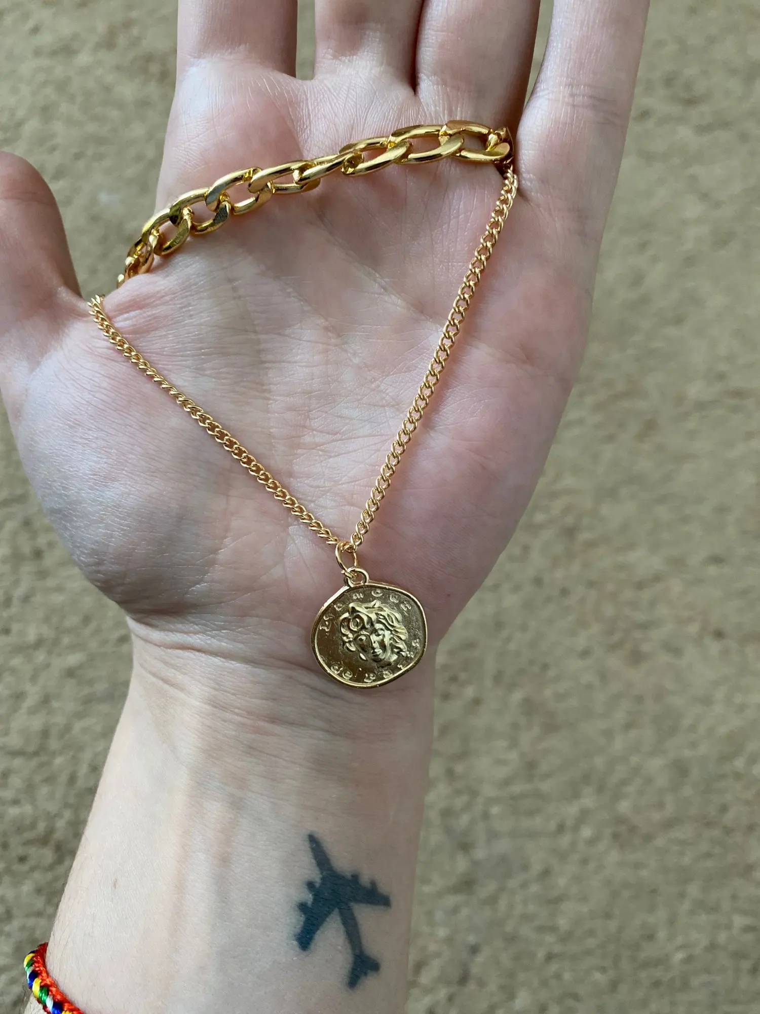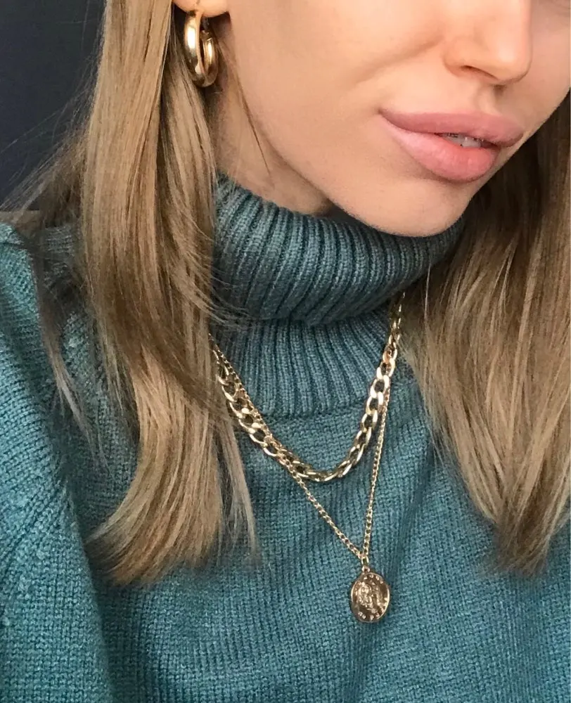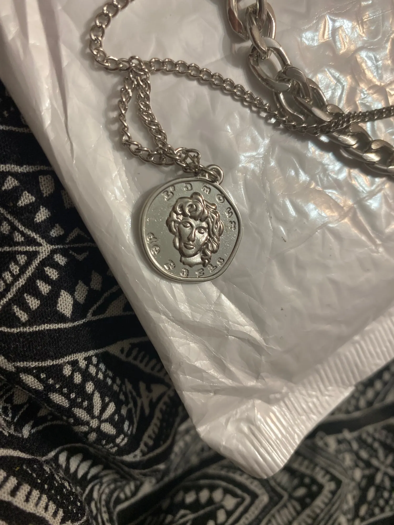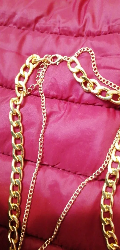 Очень крутое украшение. Можно сделать крутые образы. Мне очень понравилось. Цепи не хлипкие. Хорошая застежка. Не тяжёлая. Не красит тело.