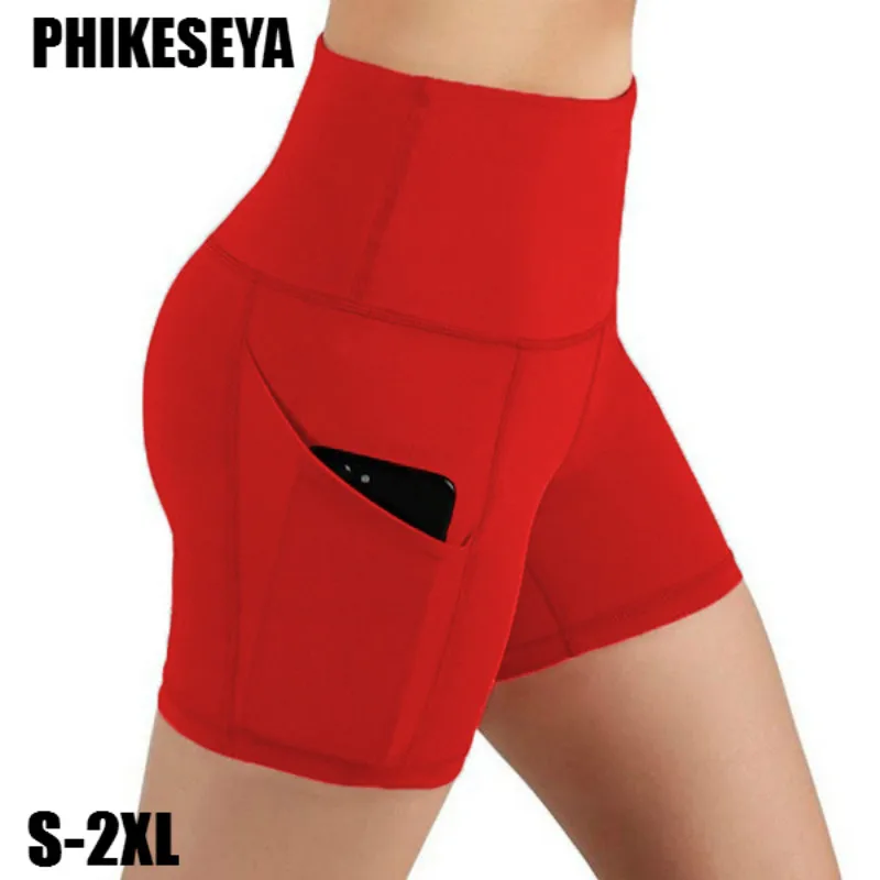 Женские шорты для тренажерного зала Леггинсы для йоги с высокой талией, с эффектом пуш-ап, с карманами, для бега, фитнеса, йоги