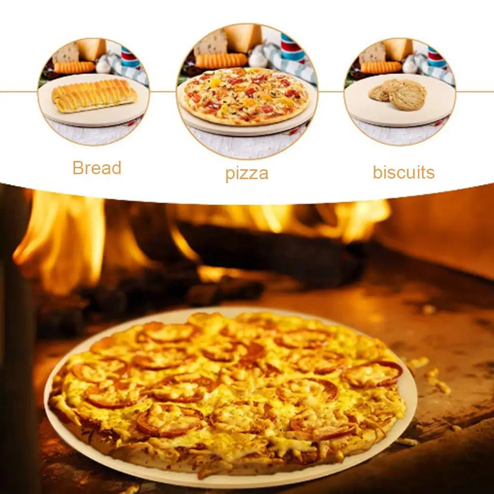 1. Круглый камень для пиццы идеально подходит для приготовления потрясающей пиццы, хлеба и других выпечки на вашей кухне.2. Пекарский камень помогает устранить горячие точки во время приготовления пищи и производит равномерную корку для загара. Они также идеально подходят для нагрева или перегрева готовых или замороженных продуктов.3. Естественные характеристики камня могут привести к темнению и появлению пятен с возрастом. Не пытайтесь избежать этого обесцвечивания.4. Поместите еду, которая будет запечена на камне, а затем Вернитесь в духовку или гриль. Камни будет жарко! При обращении, используйте перчатки или перчатки для духовки. Параметры: