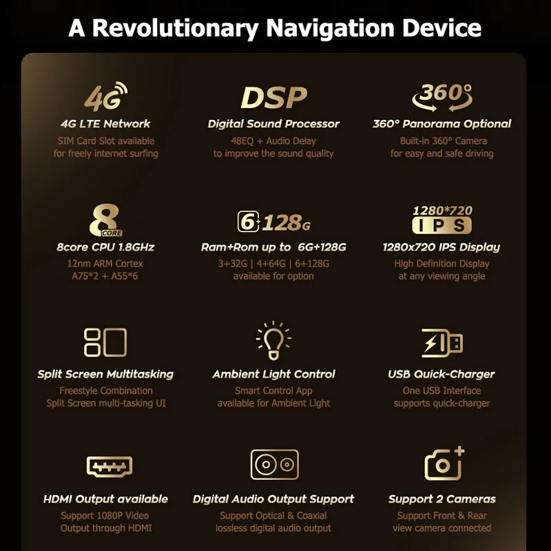 Special FeaturesRadio tuner/Capacitive screen/Bluetooth/TV/Built-in GPS