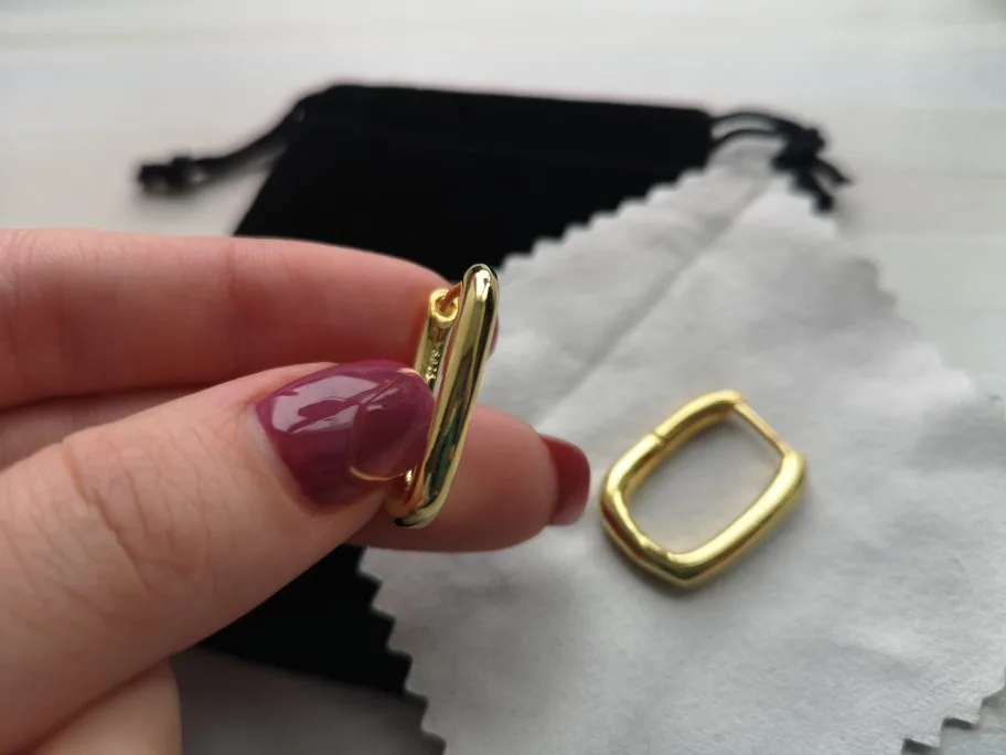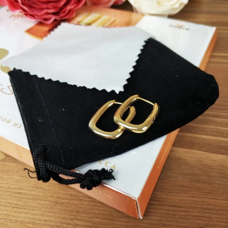 Серьги супер)) пришли в Украину за 17 дней. Тяжёлые , не полые внутри. Стоит проба, но врядли это серебро. Главное чтобы не облезли. Продавец добавил чёрный мешочек ( без надписей) и салфетку для протирания. Смотрятся стильно. Длина 2 см. Рекомендую к покупке))
