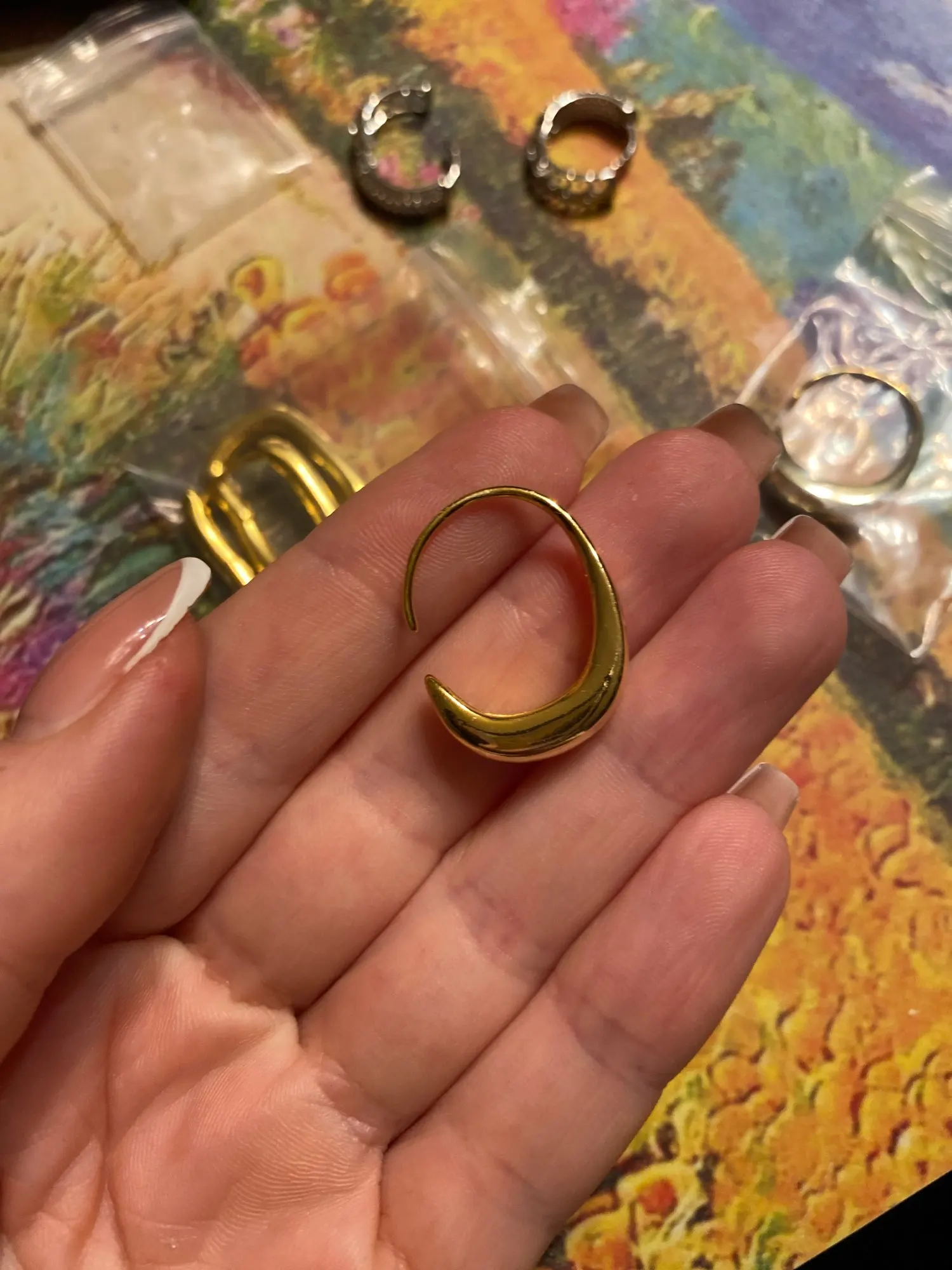 Серьги просто супер! Выглядят дорого, цвет красивый, размер средний. Идеально на каждый день.