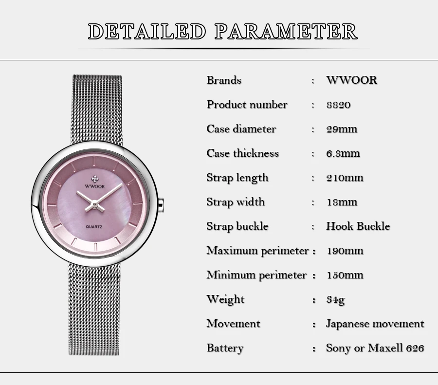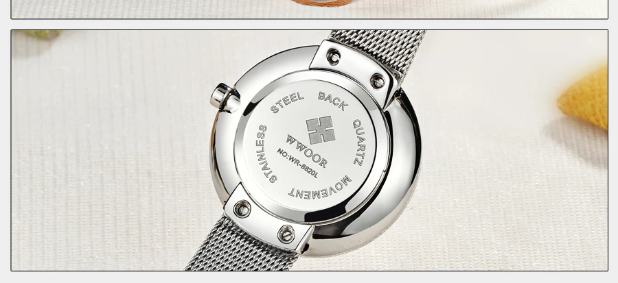 -1 x WWOR/женские часы-1 подарочная коробка WWOOR-1 x чистая ткань-1 инструмент для регулировки ремня