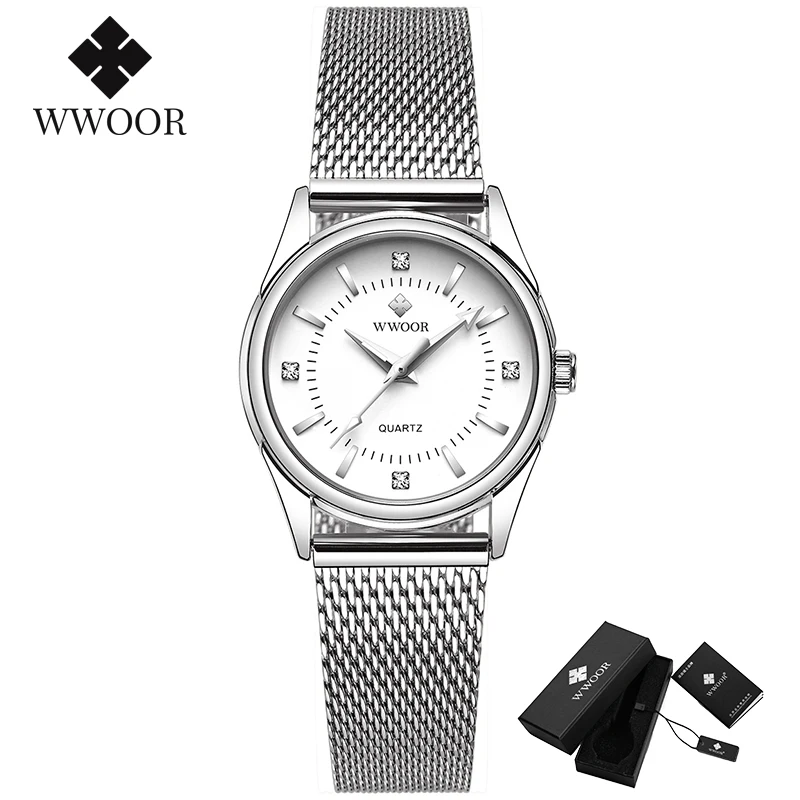 Женские часы WWOOR, женские модные часы с бриллиантами 2022 от известного бренда, серебряные элегантные маленькие часы, женские кварцевые наручные часы, подарки
