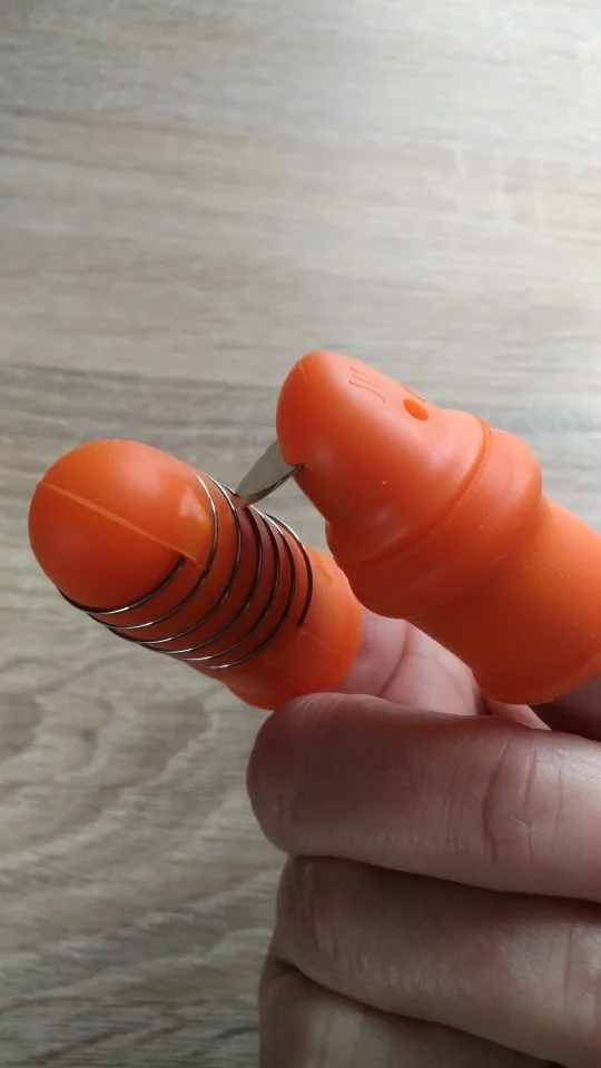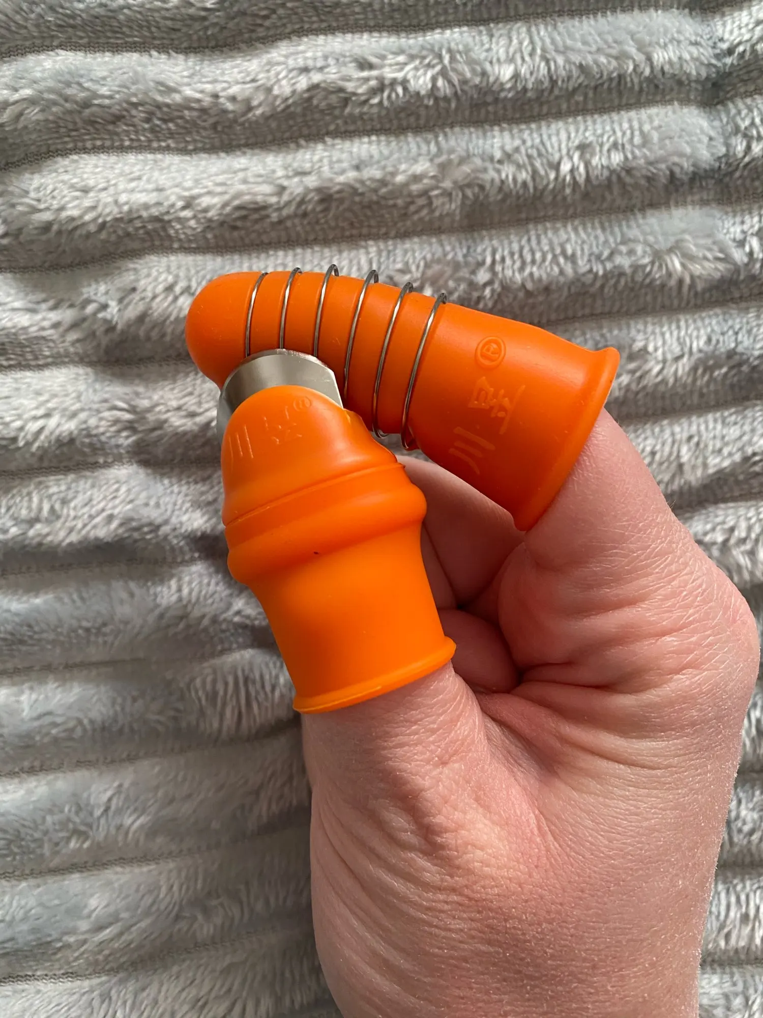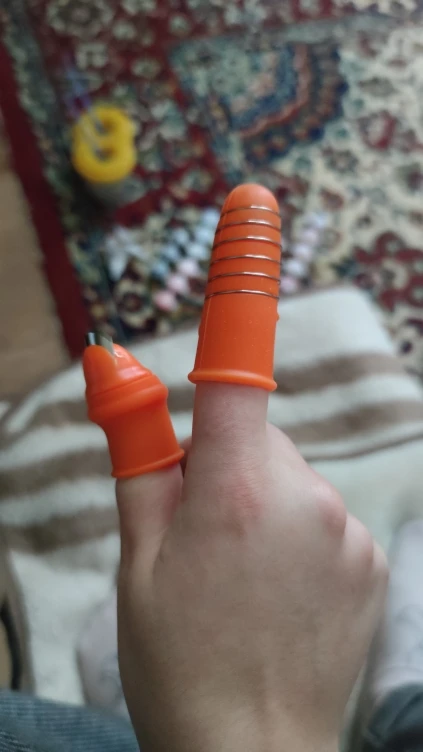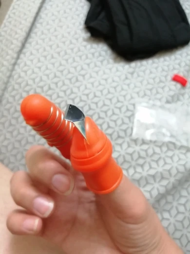 Качественная вещь (оно и понятно - доставка пошла из Гонконга). Силикон толстый, наконечник где лезвие - пластик, пружинка на другом пальчике очень кстати, поскольку лезвие очень острое. Довольна что выбрала именно это направление лезвия - для работы самое удобное расположение.
