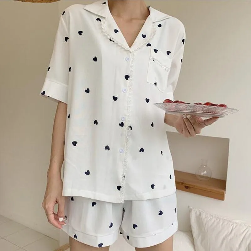 Пижамы QWEEK для женщин, домашняя одежда, пижамы, Дамская Ночная сорочка с принтом в виде сердца, одежда для отдыха, пикантная одежда для сна, комплект из двух предметов, летняя Пижама