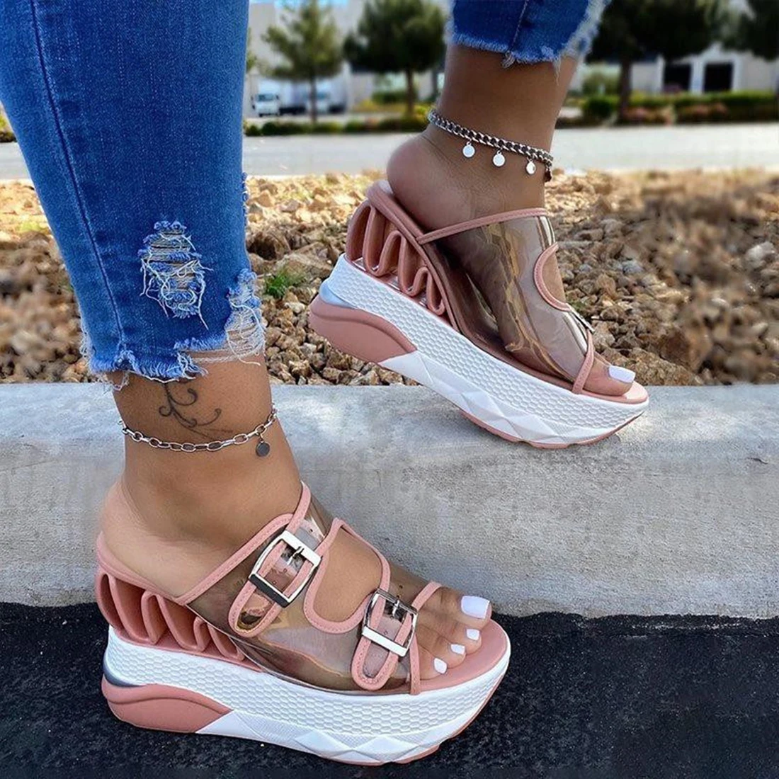 2021 летние женские прозрачные женские сандалии на платформе сандал...