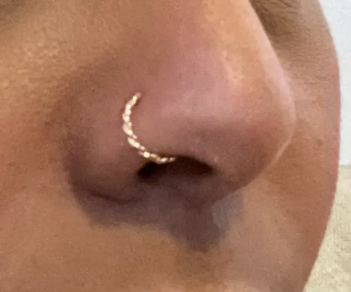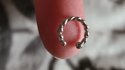 Шикарное кольцо, понравилось очень! Но не реально толстое, ни в какую не одевается, только если перекалывать нос более толстой иглой, не питайте надежд вдеть, хрящи не растягиваются.