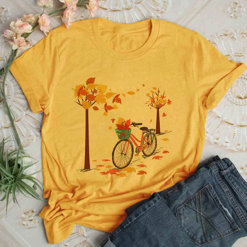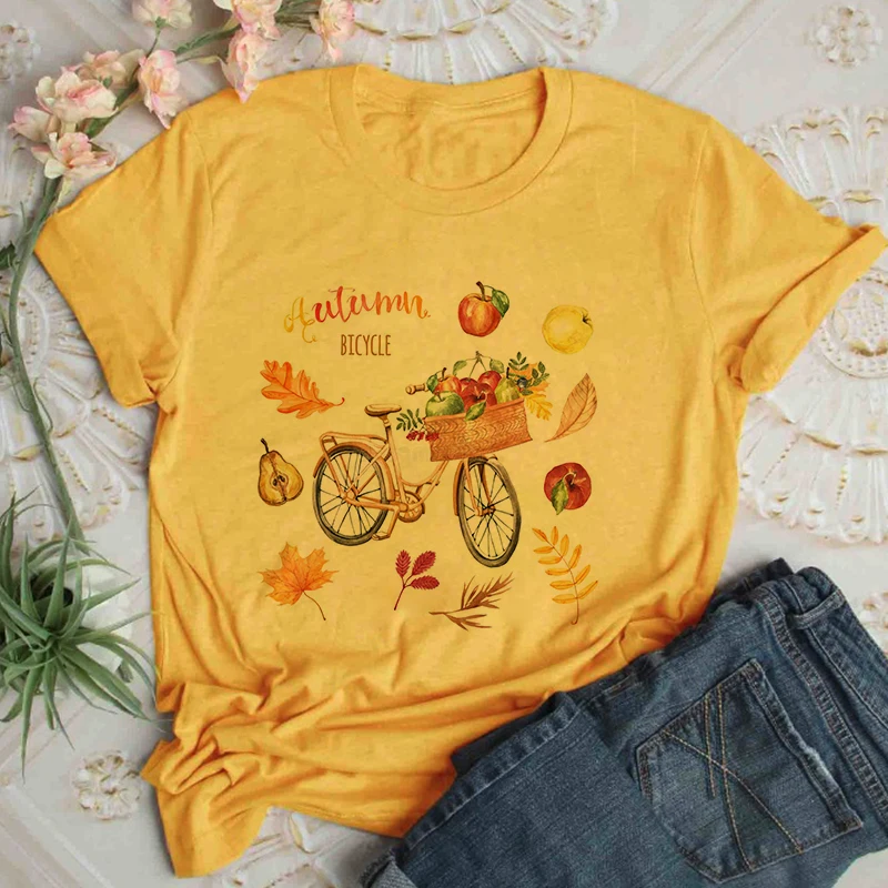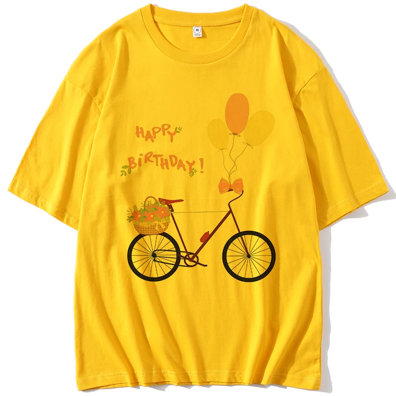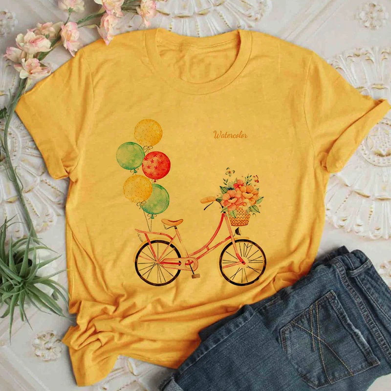 Женская футболка с графическим принтом Let's ездить на велосипеде, Новинка лета 2020, женский желтый топ в стиле Харадзюку, женская футболка