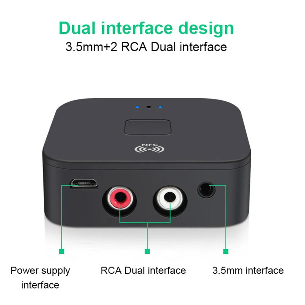 Двойной аудио Порты и разъёмы: поставляется с 3,5 мм и 2RCA аудио Порты и разъёмы, подходит для большего количества устройств (3,5 мм кабель и 2RCA кабель входит в комплект). Вы можете наслаждаться музыкой без проводов на 2 динамиках одновременно.
