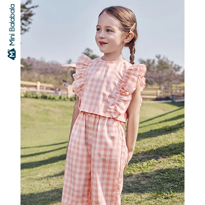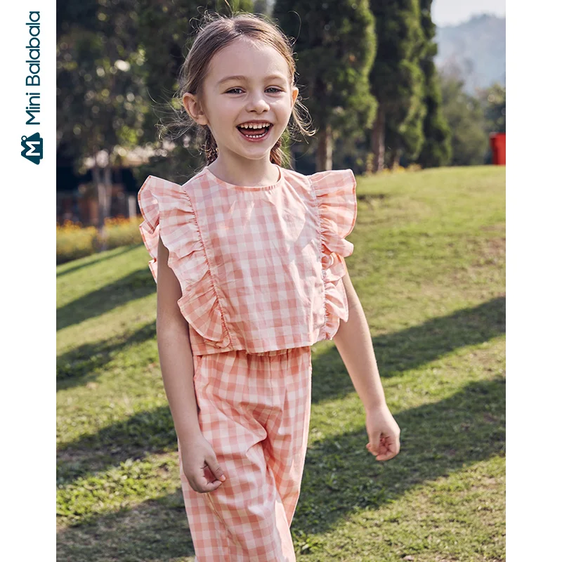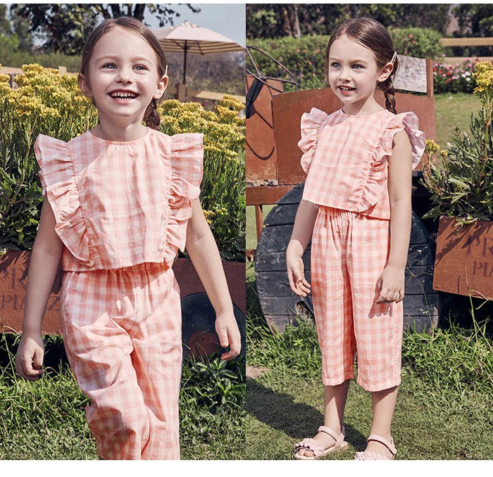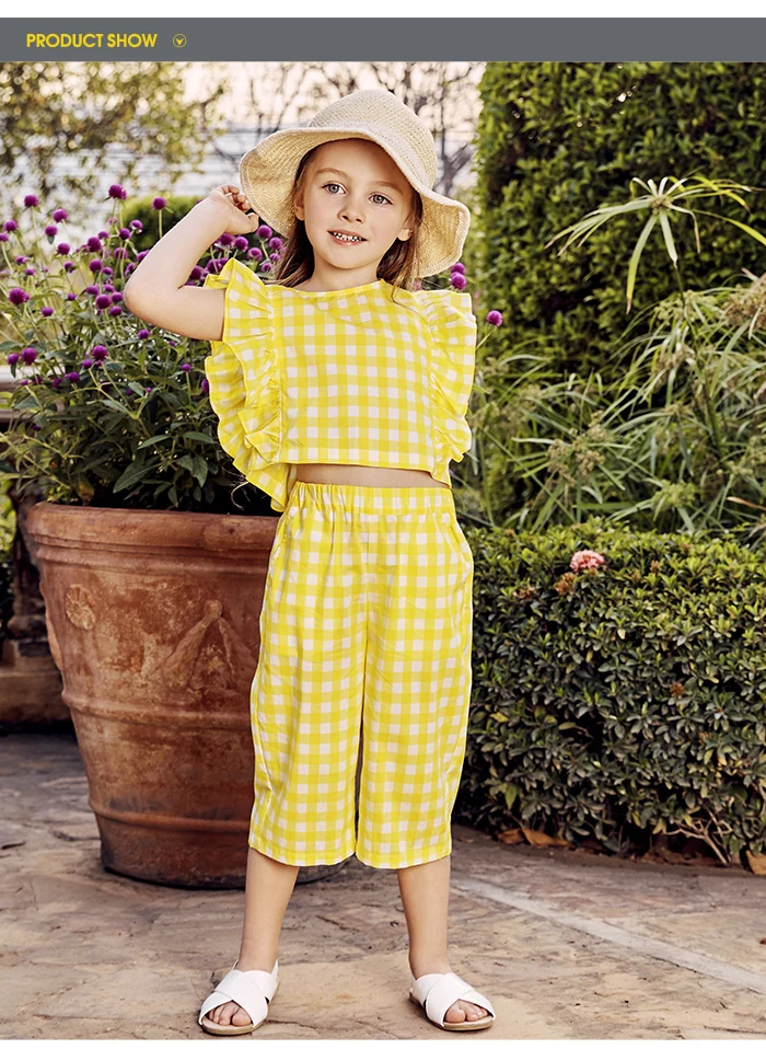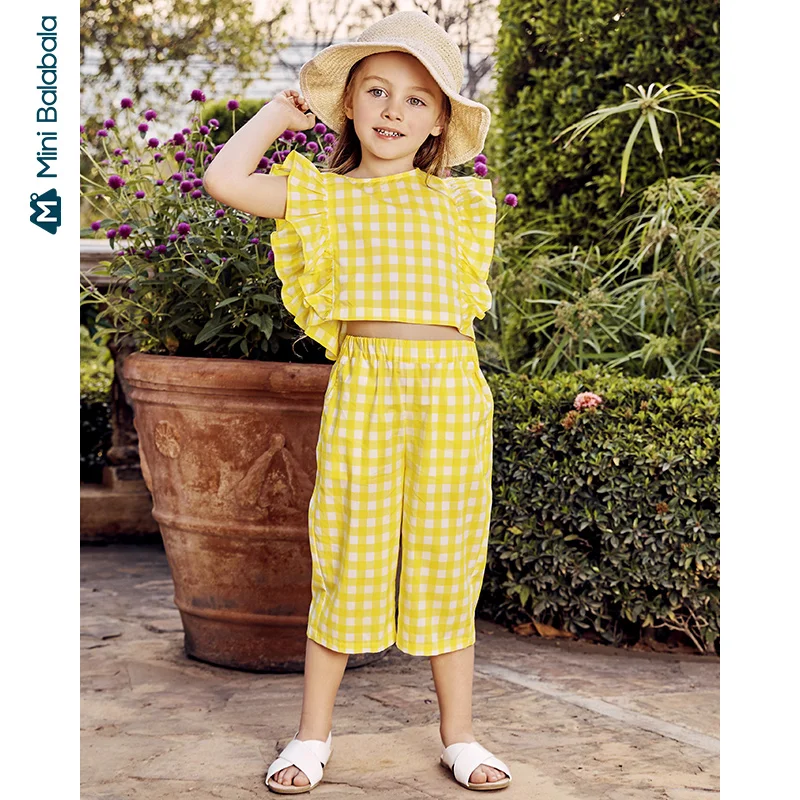 Мини-оборки для девочек, летняя одежда, новинка 2020, корейское платье из двух частей, Детские оборки