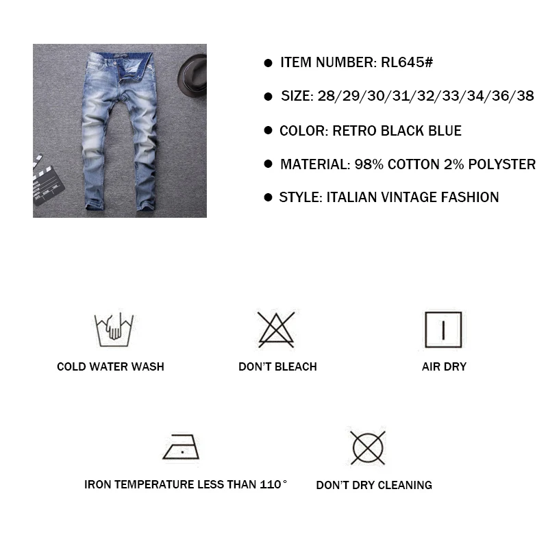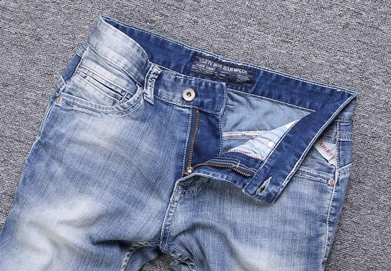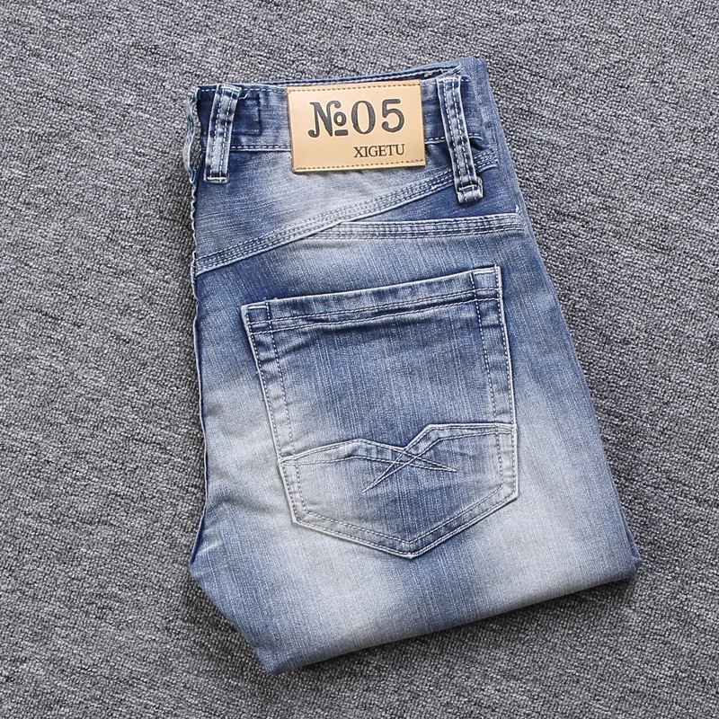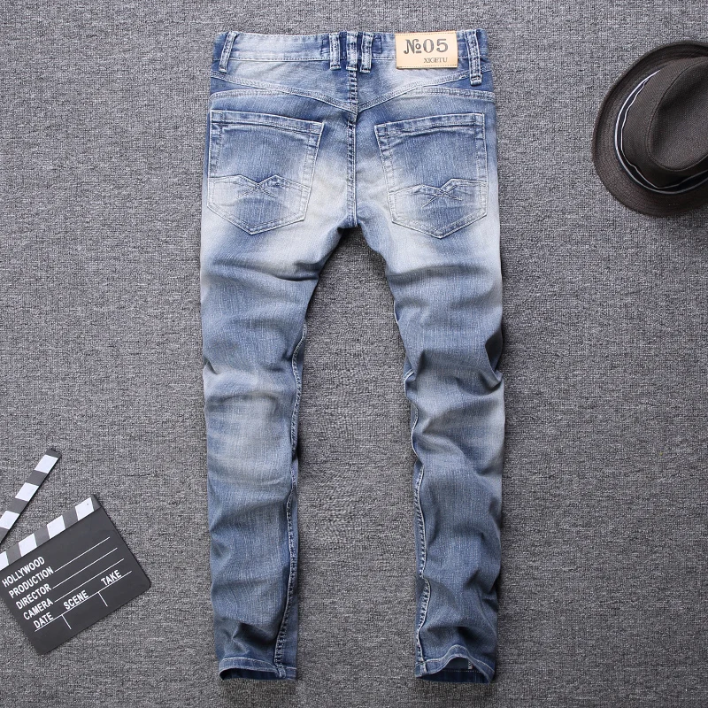 Весенне-летние модные дизайнерские мужские джинсы, Белый Потертый светильник, синие классические зауженные джинсы, Мужские винтажные джинсы в итальянском стиле