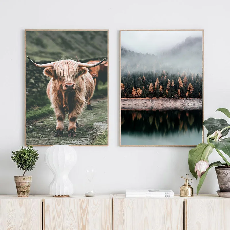 Настенная картина с принтом в скандинавском стиле, с изображением плакат в скандинавском стиле, коровы, Современное украшение для дома