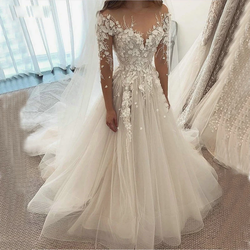 Свадебные платья с длинными рукавами и кружевной аппликацией, 2021 ...