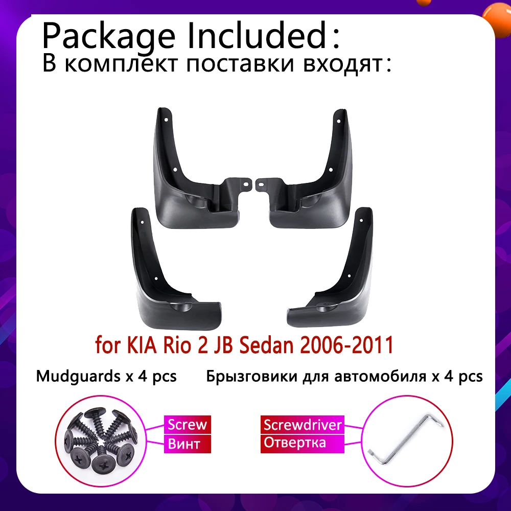 4 шт., брызговики для KIA Rio 2 JB Sedan 2006 2007 2008 2009 2010 2011
