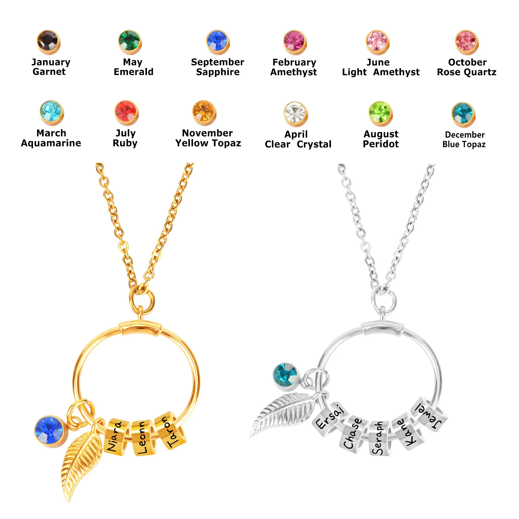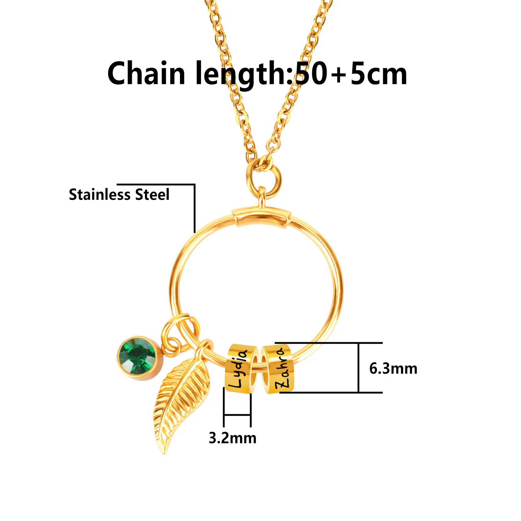 Заказное ожерелье с первоначальным именем для женщин в форме листа12 месяцев на день рождения, ожерелье из нержавеющей стали, персонализированное, 1-7 наименований