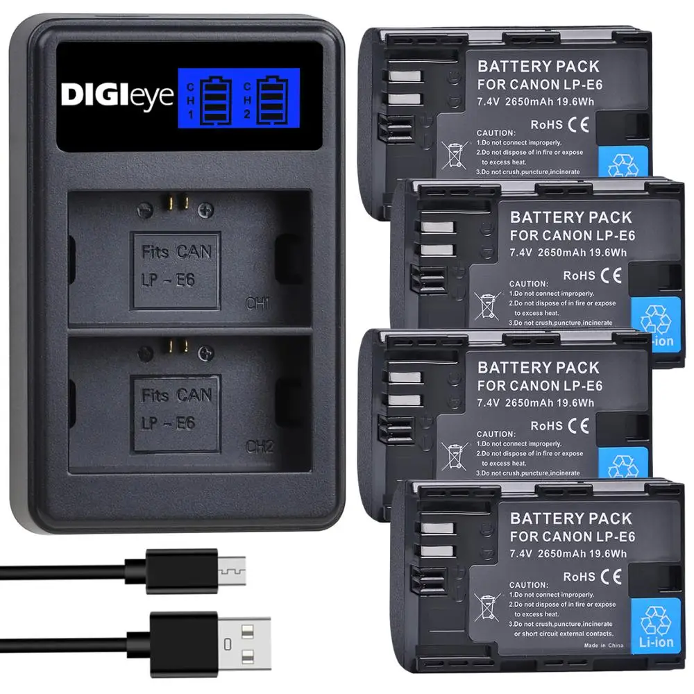 Аккумулятор 2650 мА ч LP-E6 LP-E6N, двойное зарядное устройство с ЖК-дисплеем для камер Canon EOS 5D Mark II 5D Mark III 5DS 5DS R 6D 6D 7D 7D 80D