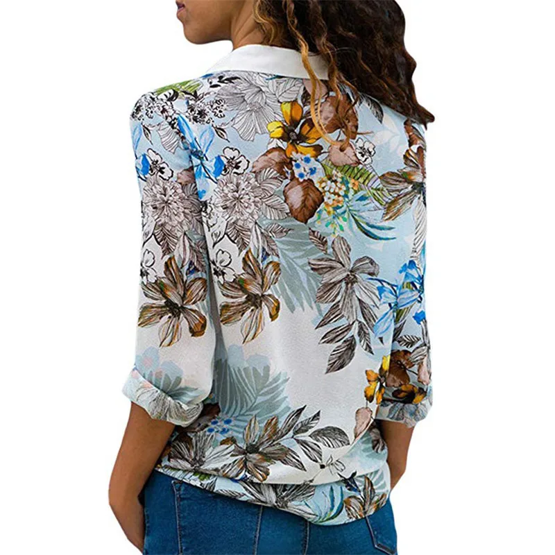 Женская шифоновая блузка, повседневные топы с длинным рукавом, с отложным воротником, на пуговицах, в стиле пэчворк, S-3XL