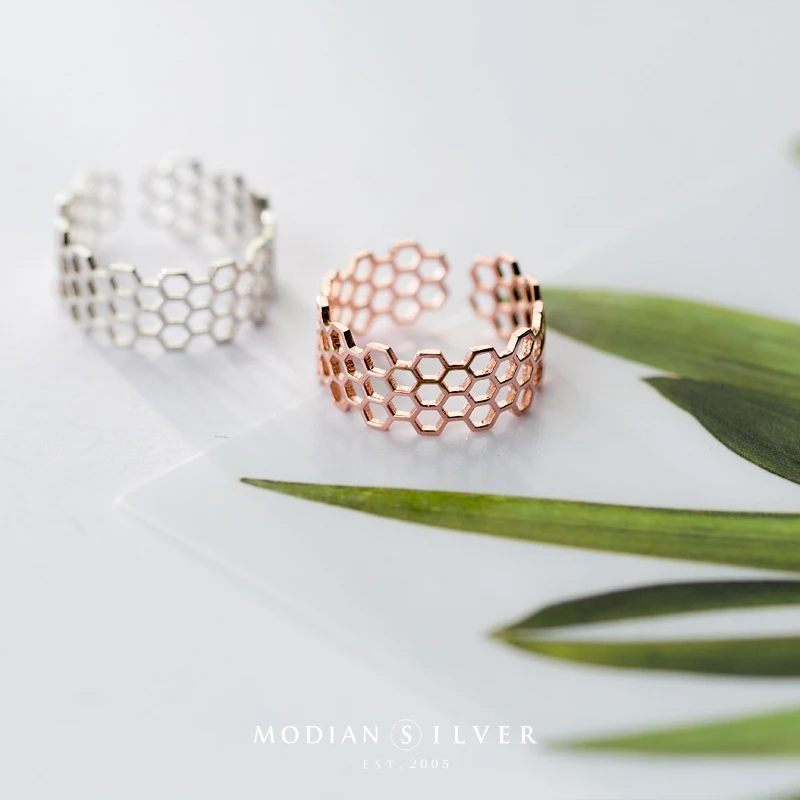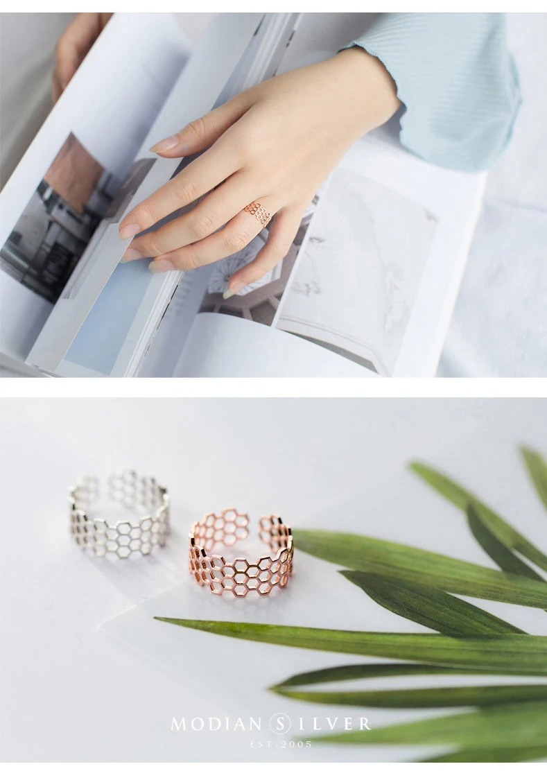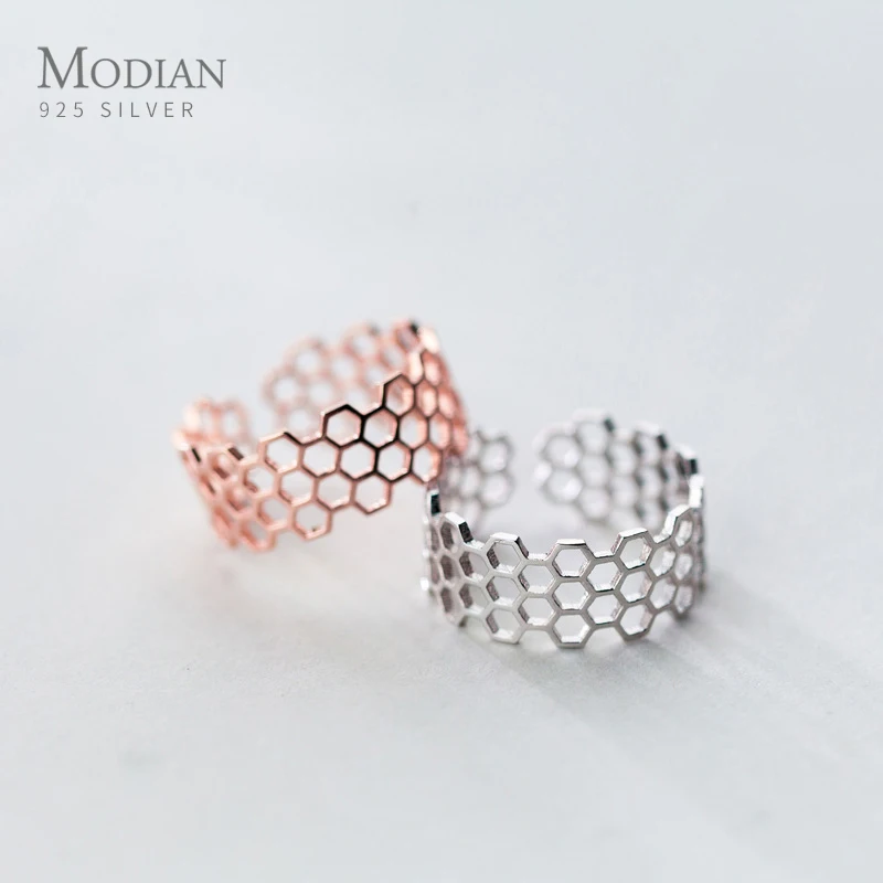 Женское Открытое кольцо Modian, регулируемое геометрическое кольцо на палец в виде сот из стерлингового серебра 925 пробы, цвет розовое золото, изящная бижутерия