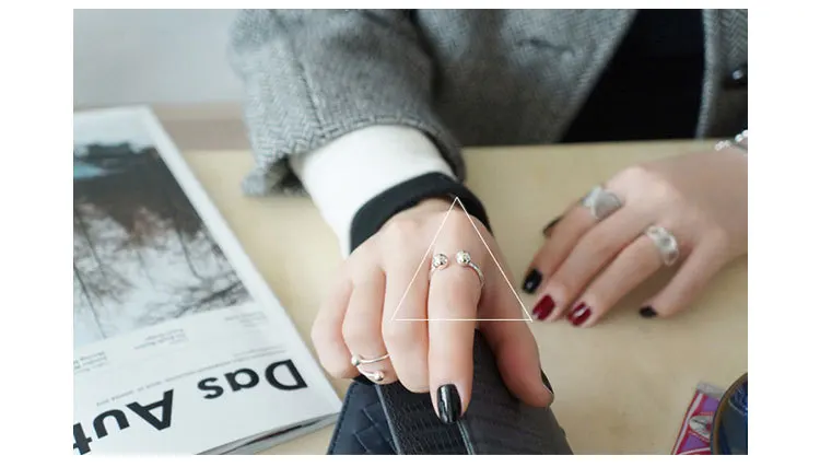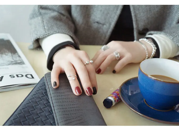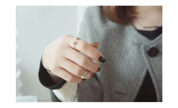 100% искусственное серебряное Открытое кольцо, геометрические двойные кольца с открытыми костяшками, кольцо с бусинами, крутой стиль, панк-рок, кубический куб