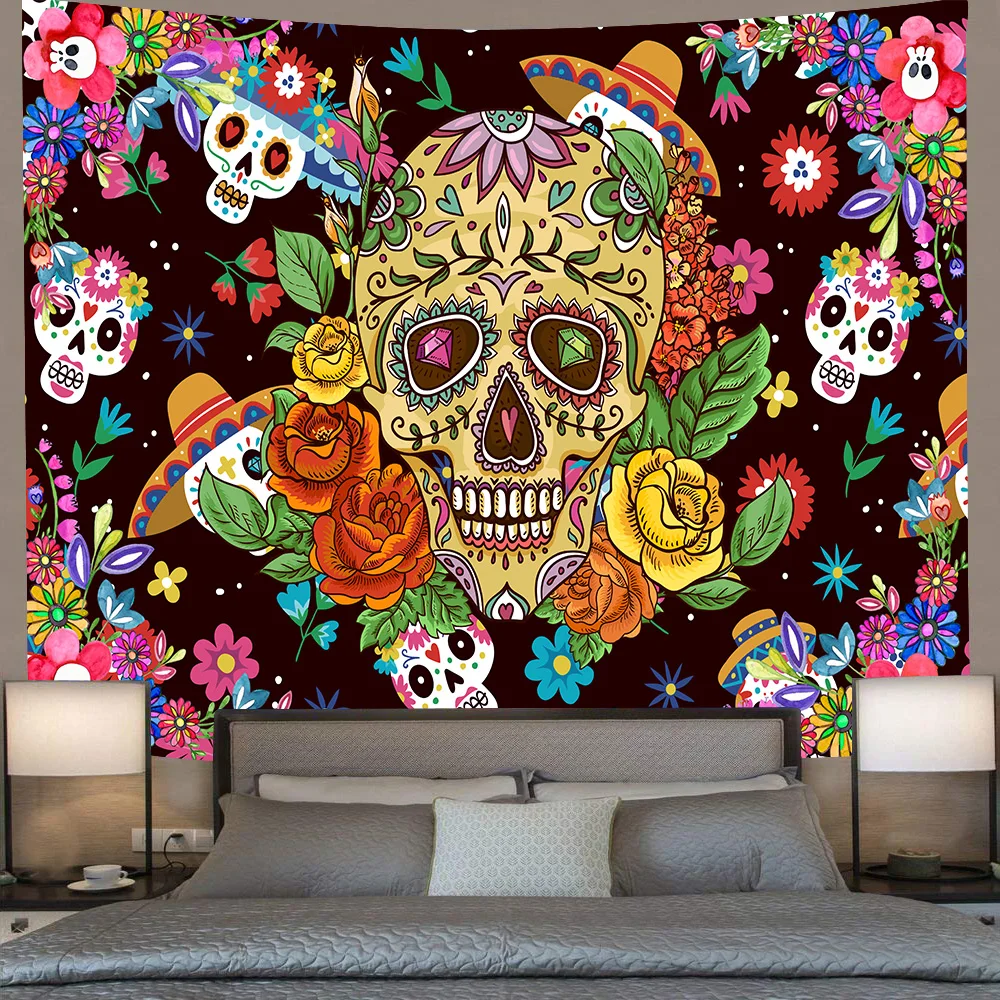 2021 гобелен мексиканский день мертвецов фон для мексиканской фиест...