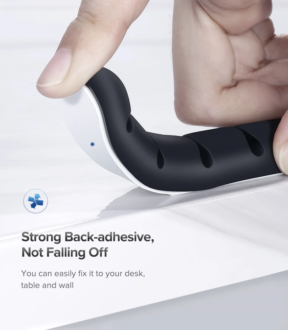 Ох, вот это сервис! Шикарно! Ощущение, что не недорогие держалки для кабеля купил, а айфон какой-нибудь. Небольшая белая коробочка с принтом, в ней пакетик из какого-то приятного на ощупь полимера, в котором завернуты пластиковый лоток с самими держалками и инструкция. Сами держалки сделаны очень аккуратно и симпатично. Покрыты софт-тачем. Снизу приклеен крепкий двухсторонний скотч 3M. Кабель в пазы вставляется без особых усилий, сидит он там крепко, не выпадает. При этом его легко не вытаскивая можно подтянуть туда-сюда. Просто даже не представляю, что можно было бы улучшить! Также в конверте обнаружились две липучки для сматывания кабелей в рулончик и карточка-визитка. Доехало за две недели. I'm very satisfied! 5 stars!
