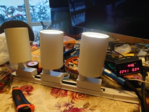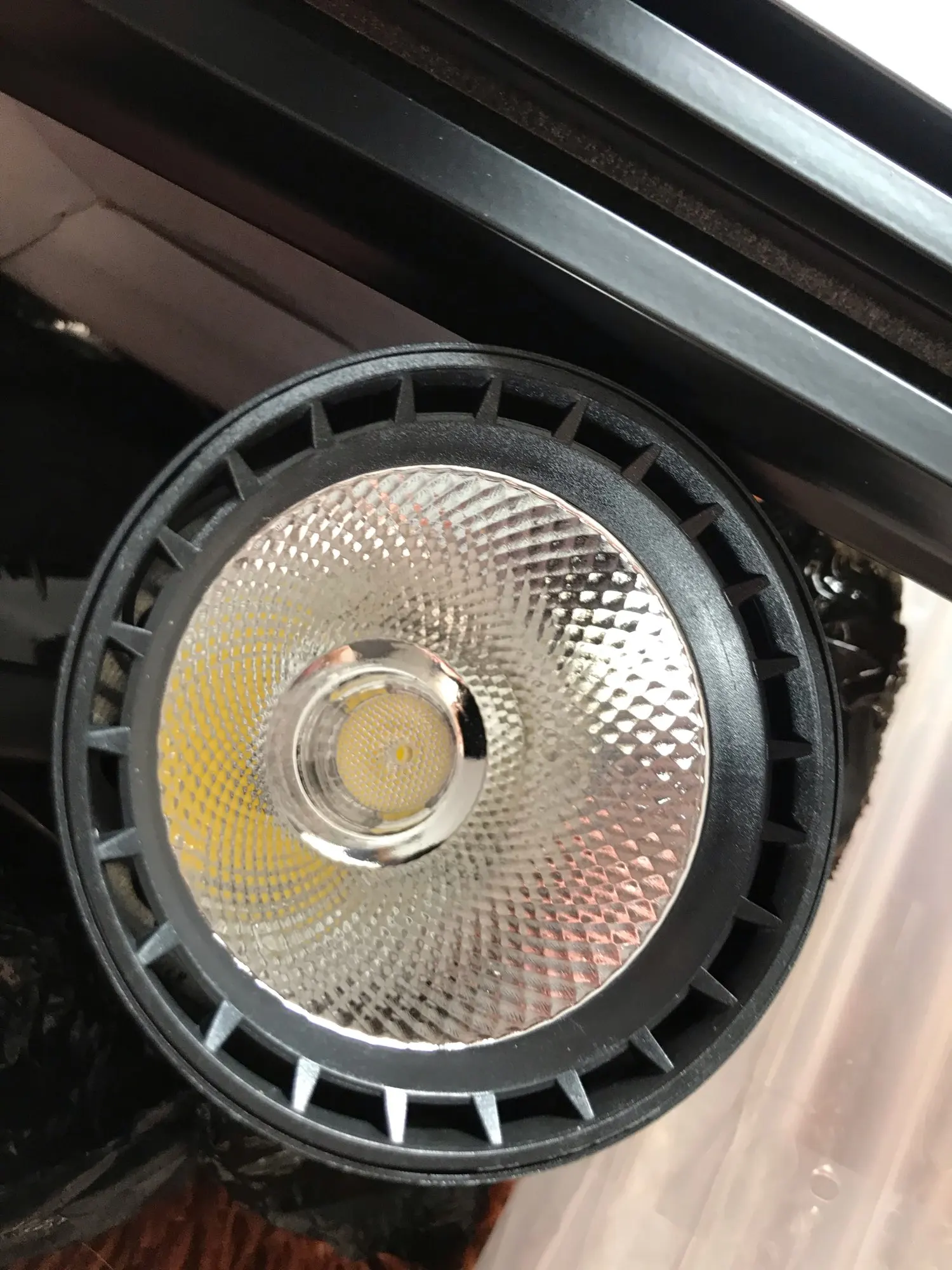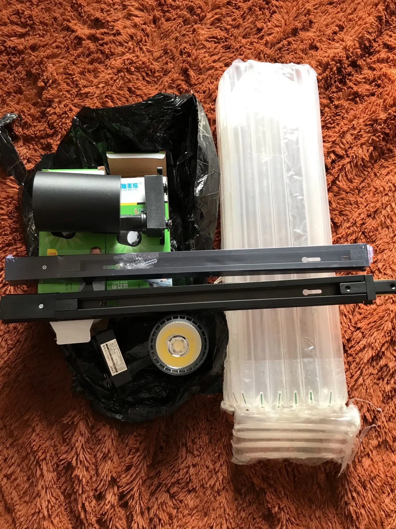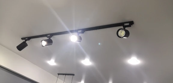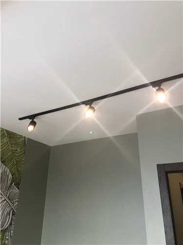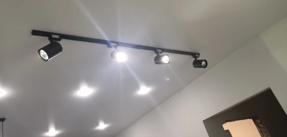 Я светом доволен. Но есть нюансы, о которых стоит помнить. Споты и треки выполнены их пластика. И если по спотам это некритично, то треки хлипенькие на ощупь. Однако на потолке все сидит хорошо. Контакты спотов могли быть получше, один спот не ловил контакт на треке и пришлось повозиться. Издержки стоимости, только за спот в магазинах можно отдать столько, сколько здесь за всю конструкцию из трех спотов. Сделал фото в контровом свете, чтобы было понятно, что свет очень жесткий. Не для глаз, поэтому напрвляйте на объекты и пусть переотражается. Специфика товара. Такие вещи берут, чтобы подсвечивать определенные зоны. По мощности. Я взял 40вт , каждый светит на все 40, но комнату он не зальет, а будет именно подсвечивать зоны , куда направлен. И будте внимательны при получении, мне продавец прислал свет в двух посылках - в одной споты, в другой - треки. Так что какая-то часть может прийти раньше. Не кипишуйте раньше времени, просто в деталях заказа будет указано 2 трек номера.