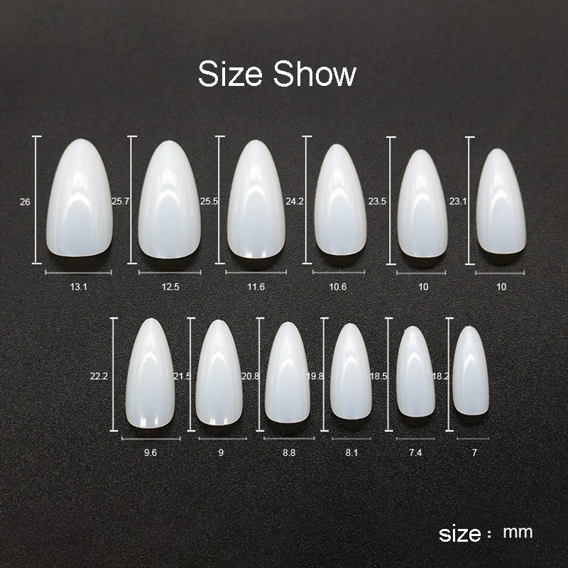 Новинка 500, дневные овальные Типсы для ногтей, полное покрытие для салона, Типсы для французского дизайна ногтей, полное покрытие, Акриловые искусственные ногти, миндаль, шип, пластмассовый, 12 размеров