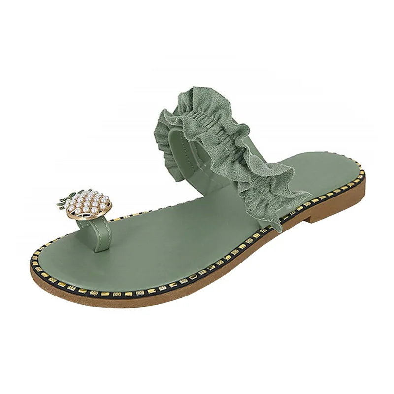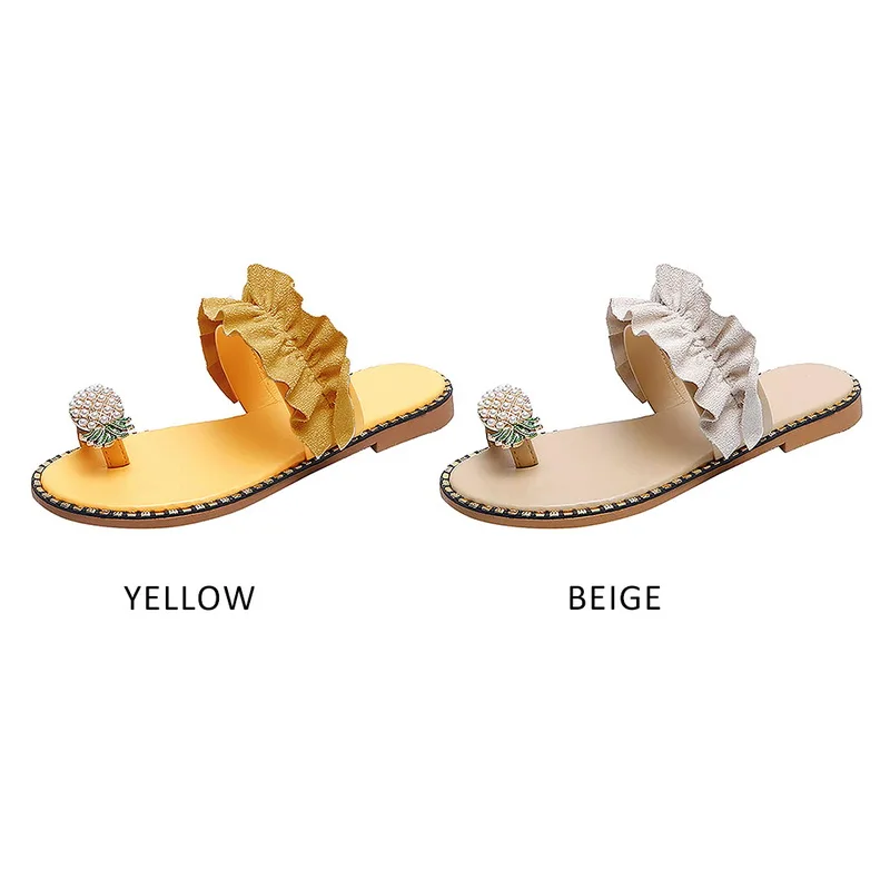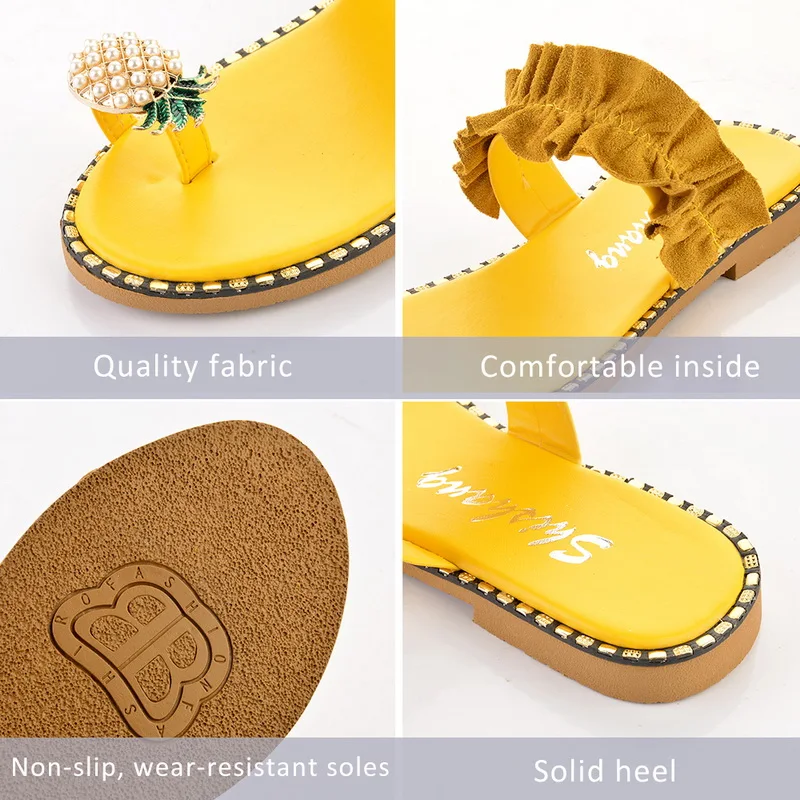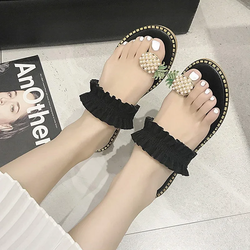 Женские шлепанцы с ананасом, жемчугом и плоской подошвой, богемные повседневные сандалии, пляжная обувь, женские сандалии на платформе, летние женские туфли 2020