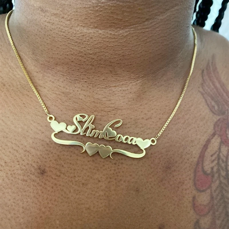 Женское Ожерелье из нержавеющей стали с двумя именами и сердечками ...