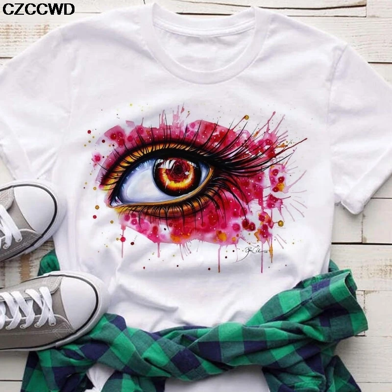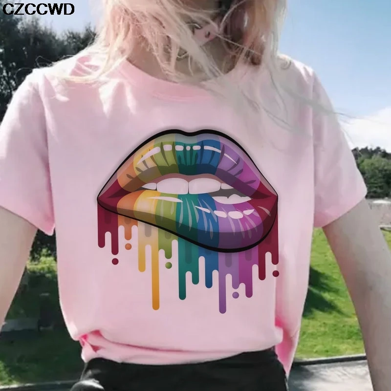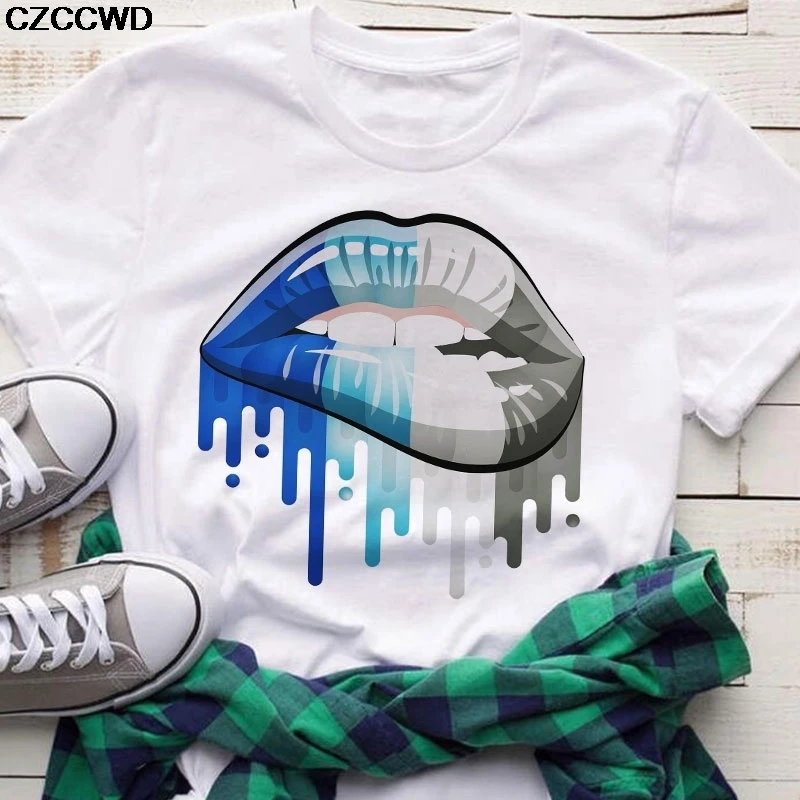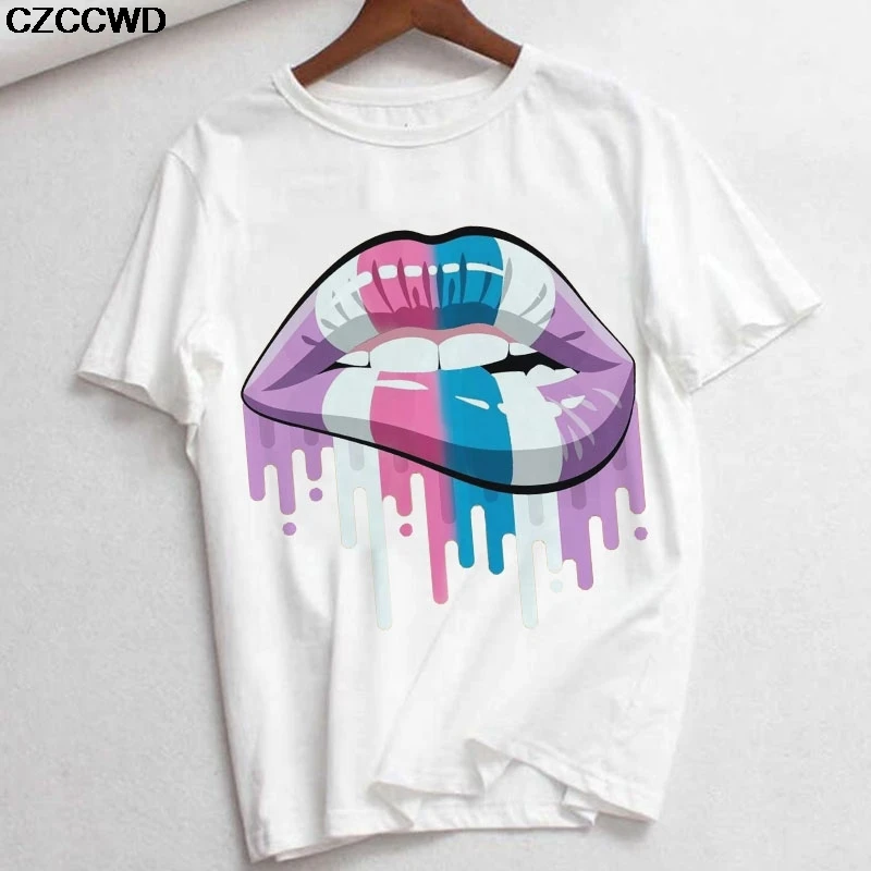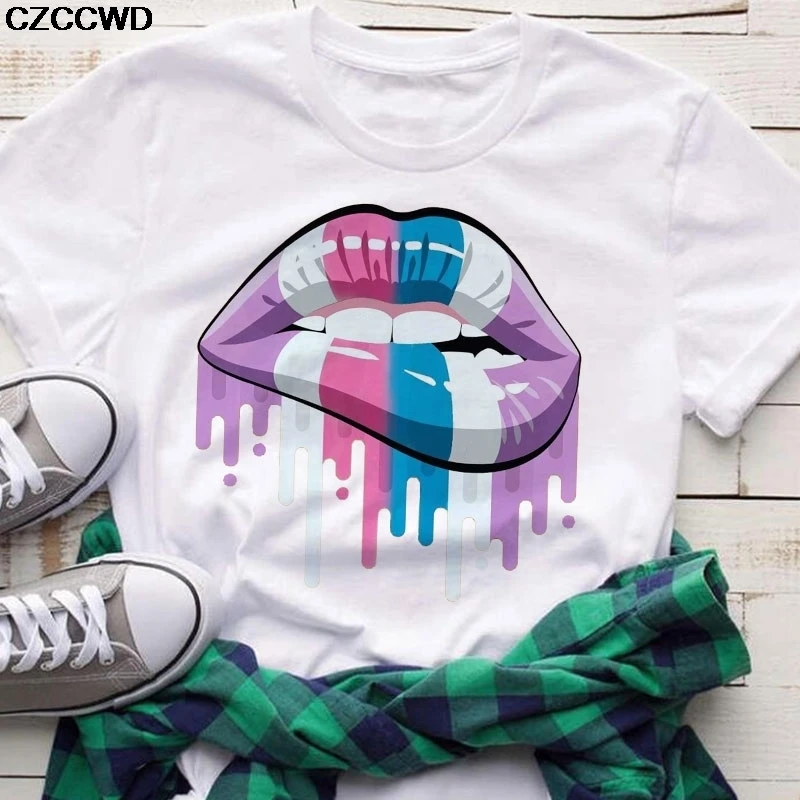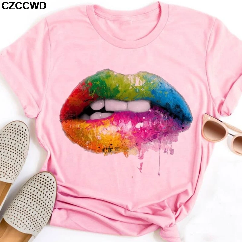 Женские летние футболки 2020, топы, цветная футболка с круглым вырезом и принтом губ, подходящая ко всему белая футболка в стиле Харадзюку, забавная футболка для девочек