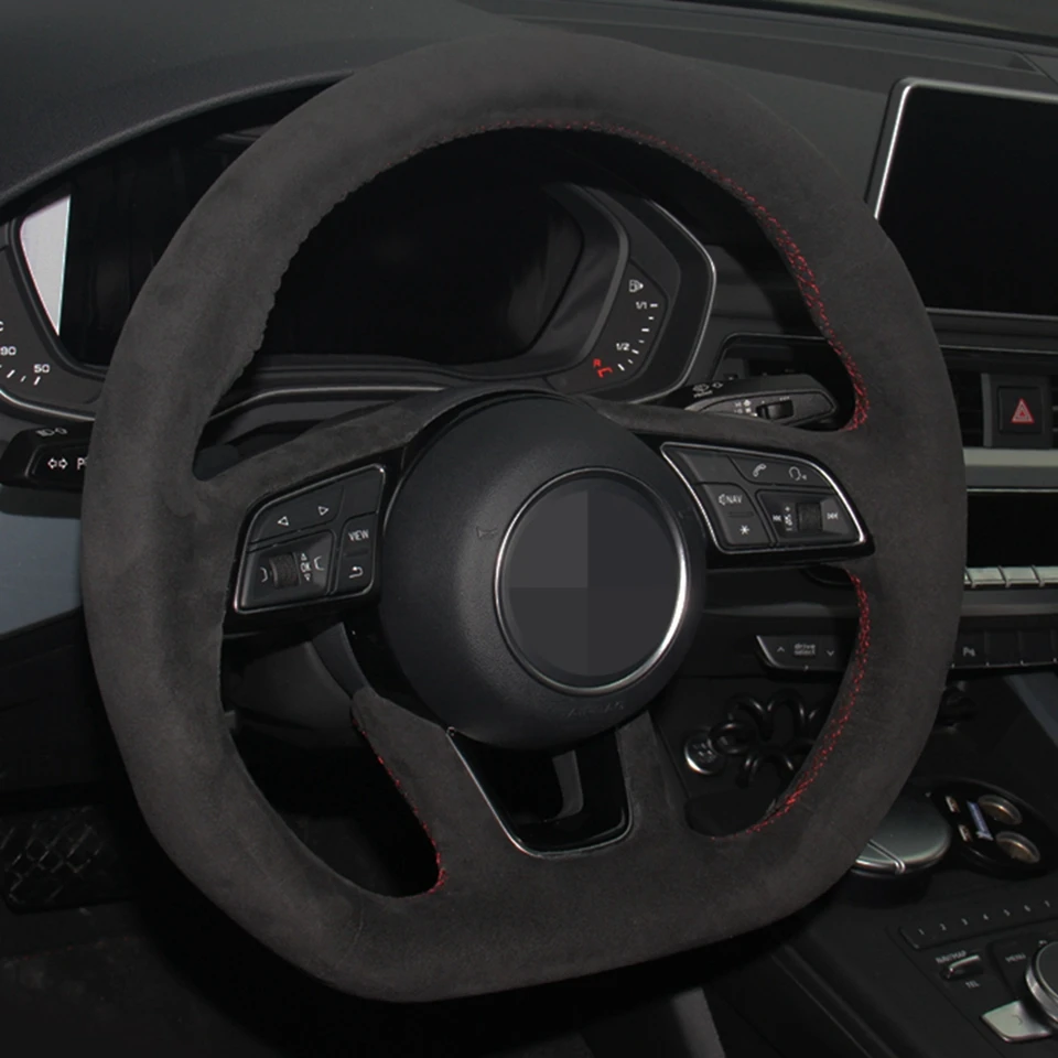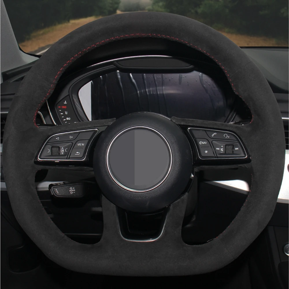 Сделай сам черного цвета из натуральной кожи и замши чехол рулевого колеса автомобиля для Audi A3 (8V) A4 (B9) Avant A5 (F5) A1 (8X) Sportback Q2 2016-2019