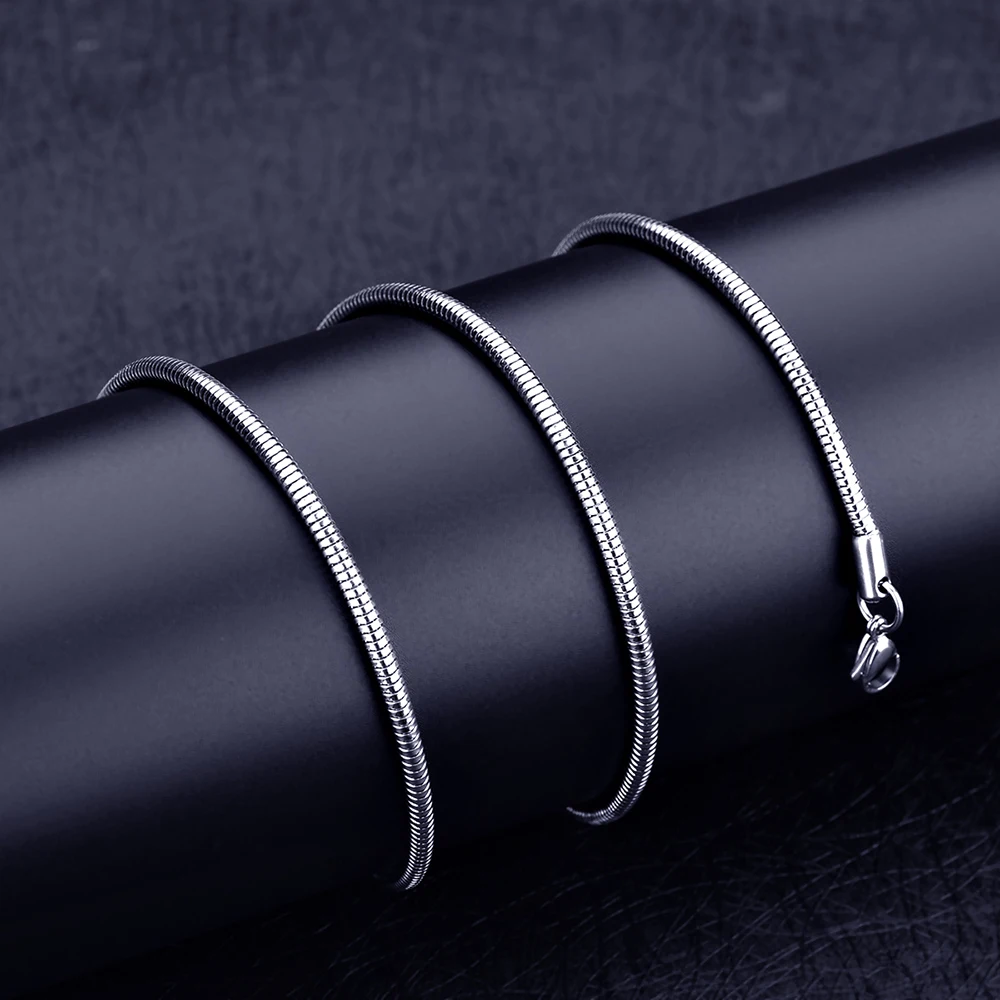Цепь змейка из нержавеющей стали 316L для мужчин и женщин, ширина 2 мм, бижутерия, звеньевое ожерелье из титановой стали