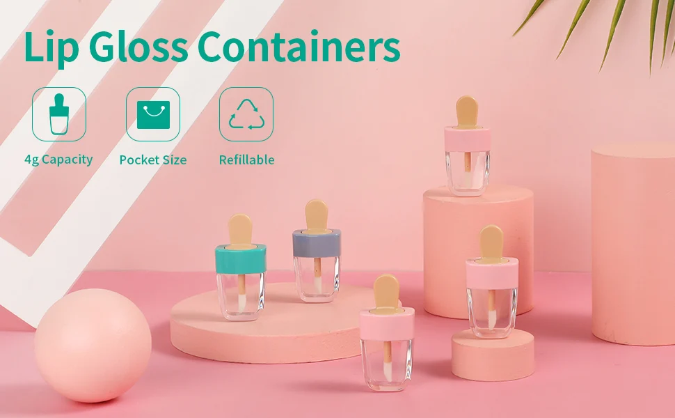 10pcs 8ml Lip Gloss Bottles Lip Glaze Tube Empty Pink Ice Cream Lip...
