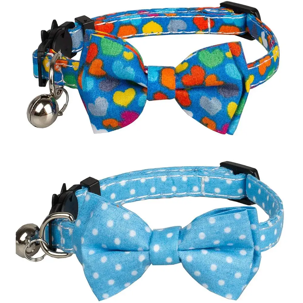 Ошейник для кошек с колокольчиком, регулируемый ошейник для кошек с галстуком-бабочкой, ошейник для кошек с цветочным бантом, съемный регулируемый безопасный ошейник для щенков