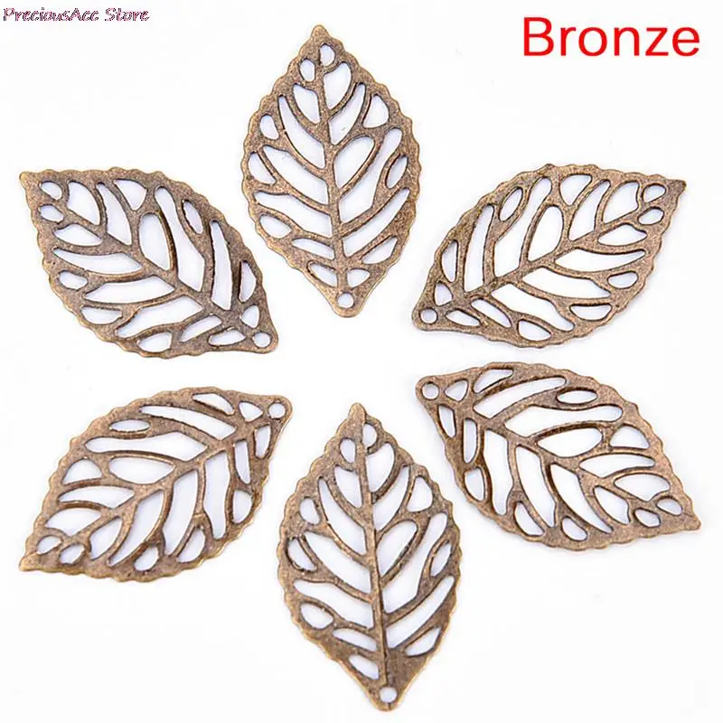 50 шт.лот белая, золотая, Бронзовая Античная бронзовая металлическая филигрань цветы ломтик подвески в виде листьев Настройка ювелирных изделий сделай сам