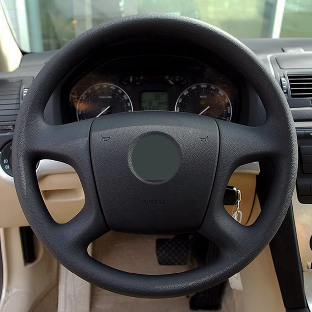 DIY ручной работы черного цвета из искусственной кожи чехол рулевого колеса автомобиля для Skoda Fabia 2005-2009 Octavia 2004-2009 Roomster 2006