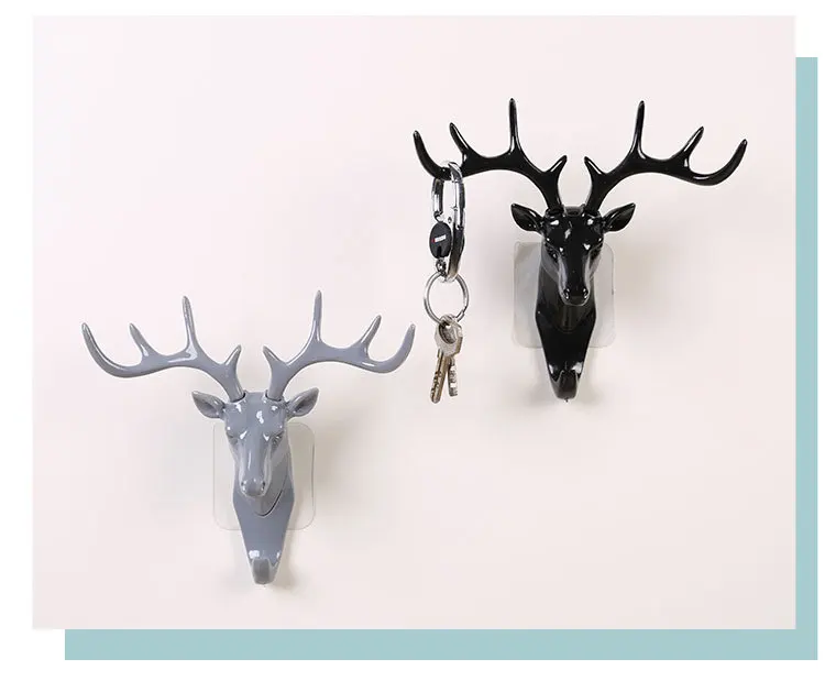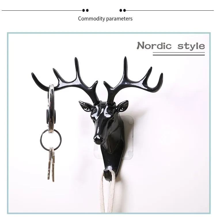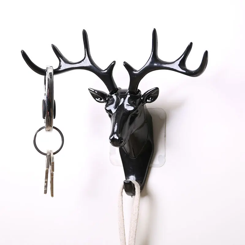 Настенный держатель для ключей в виде головы лося, клейкая вешалка ...