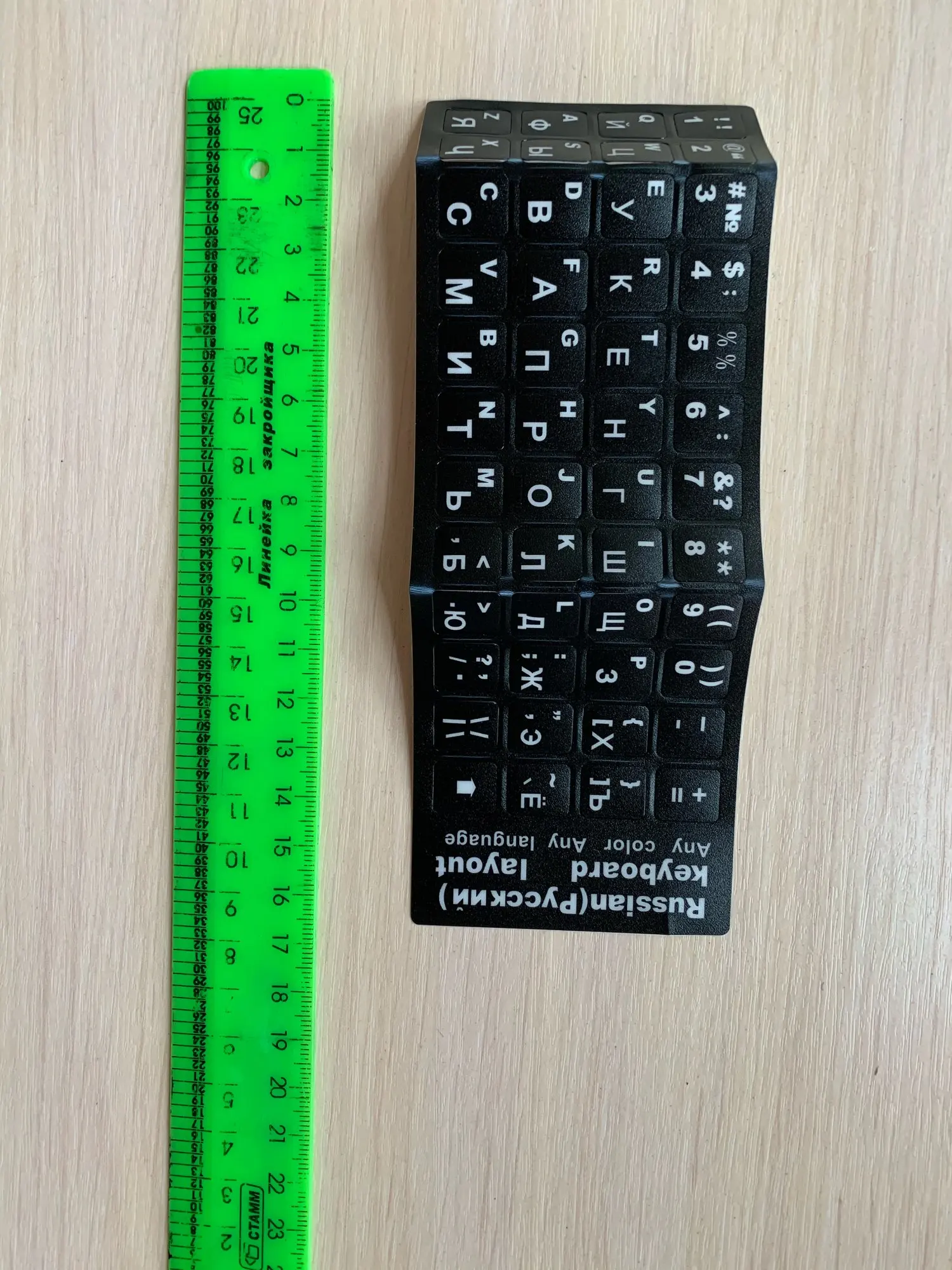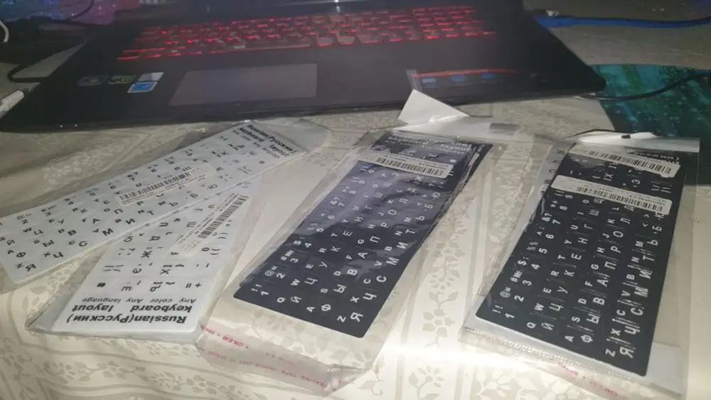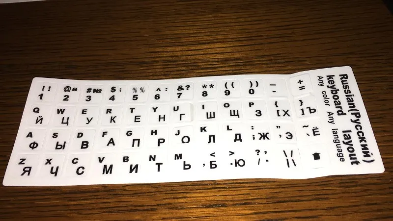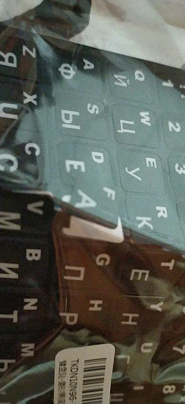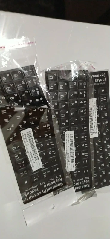 Продавец прислал очень быстро.Недели 2,5 до Киева.Клеить легко.Все видно.Немного есть запах,как только открыть упаковку.Материал плотный,посмотрим на сколько хватит. Единственное, не хватает кнопок shift, ctrl, enter.Но это можно пережить.Главное буквы.