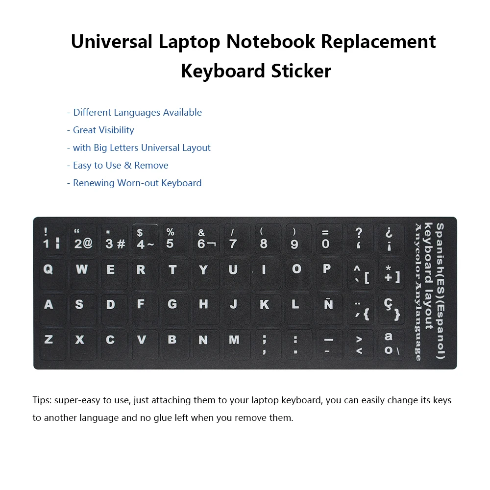 Износостойкие наклейки на клавиатуру, 1 шт., замена букв на испанскоманглийскомрусскомнемецкомарабскомитальянскомяпонском языке для ноутбуков и ПК