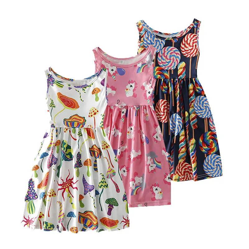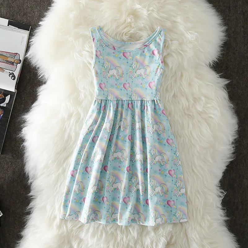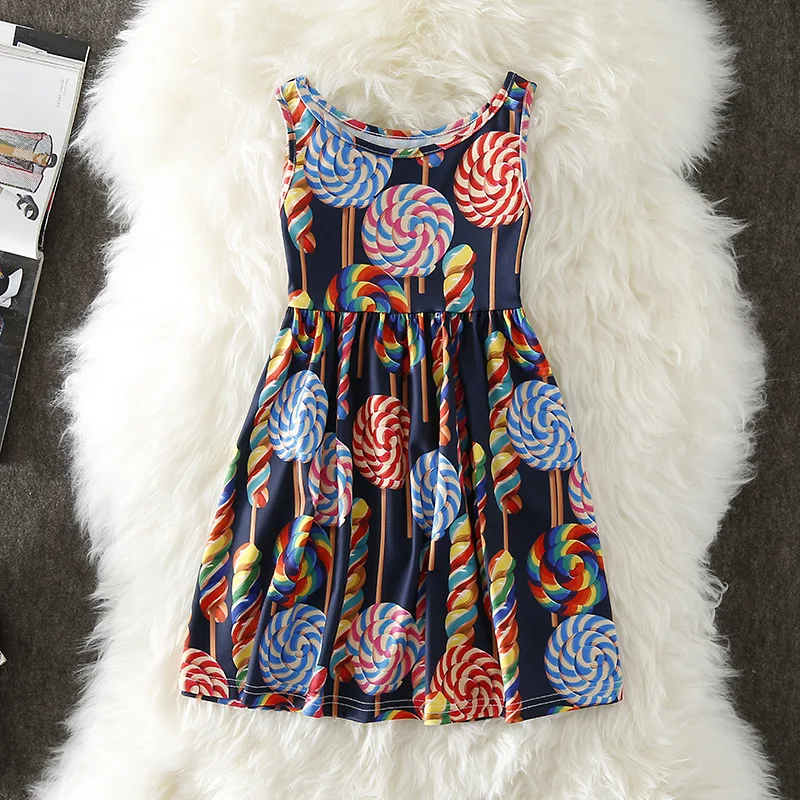 Летнее платье для девочек; Детские платья без рукавов с принтом; Детские платья для девочек; Повседневное хлопковое платье; Детская одежда